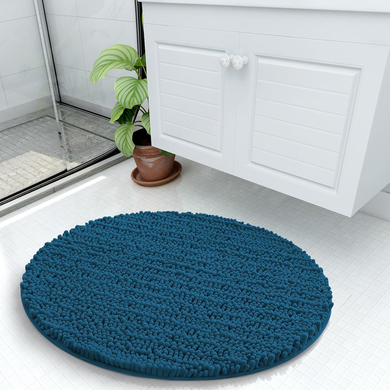 Arotive Luxury Round Chenille Bathroom Rug Mat, Extra Soft Thick Absorbent Shaggy Bath Rugs, Non-Slip Machine Wash Dry Plush Bath Mats for Bathroom, Shower and Tub, 24x24, Peacock Blue