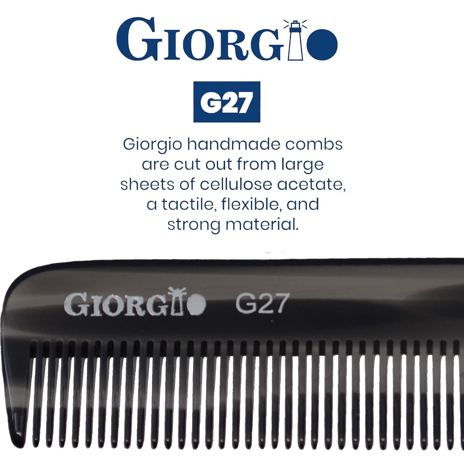 Giorgio G27 Handmade All Fine Tooth Pocket Comb, Hair Comb Straightener for Everyday Grooming Styling Hair, Mustache and Beard for Men Women and Kids, Saw Cut and Polished Black Graphite