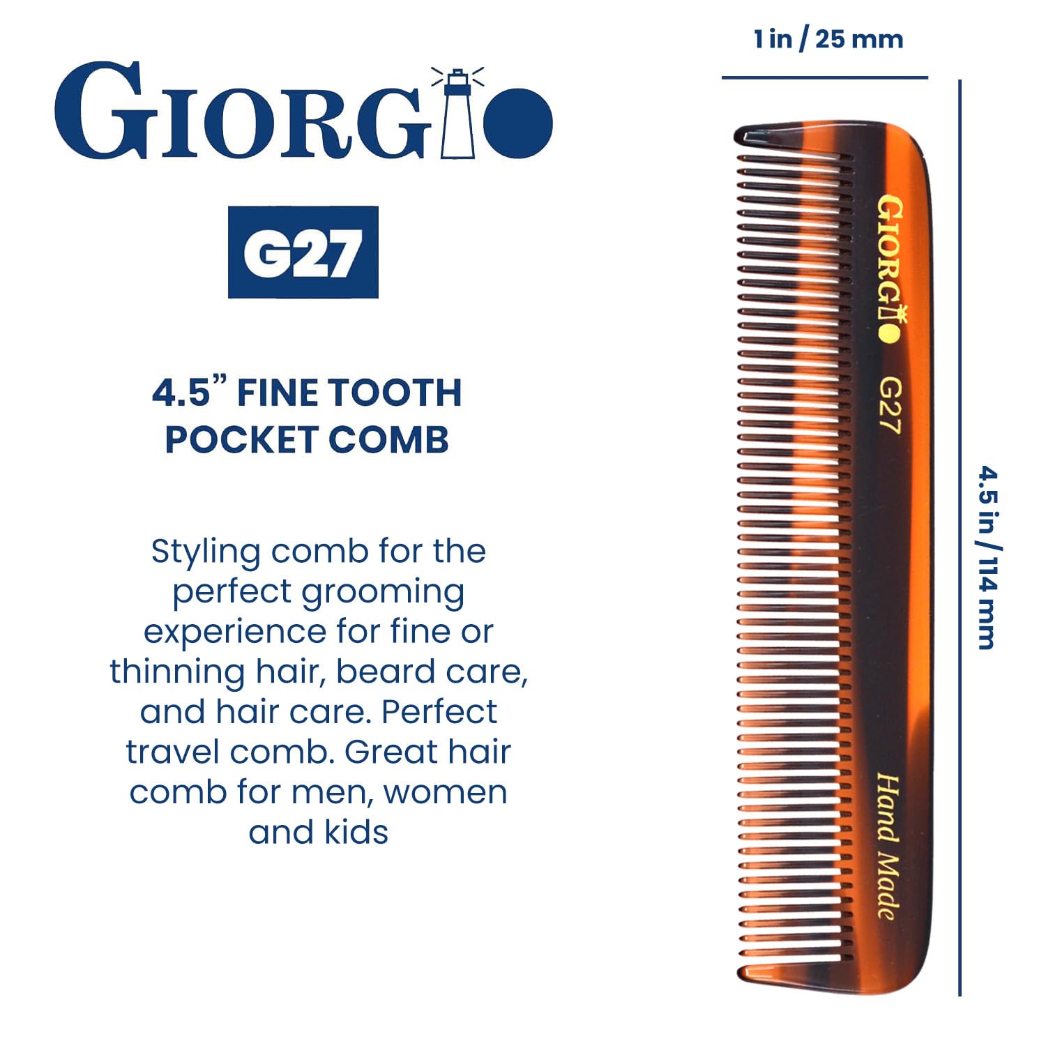 - Giorgio Pocket Comb 4.5 Inch Small TortoiseShell finish. Styling comb for the perfect grooming experience for fine or thinning hair, beard care, and hair care. The best comb for hair, mustache & beard, fits perfectly into your jeans or back pocket so you can groom your facial hair anytime, anywhere, Perfect travel comb. Great hair comb for men, women and kids