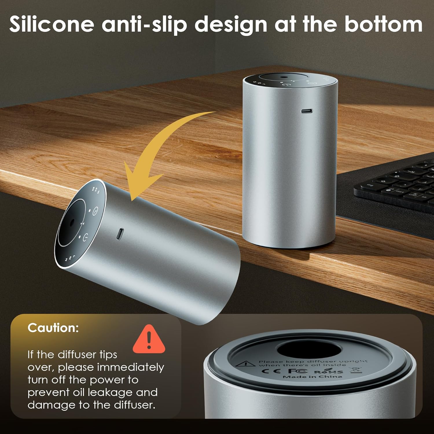 Essential Oil Diffuser with 3 Spray Modes, Battery Operated, LED Timing Display, Aromatherapy Diffuser, 1/4/8-Hour Timer, 10ml Oil Bottle, and 3 Mist Settings for Home, Car (New Silver)