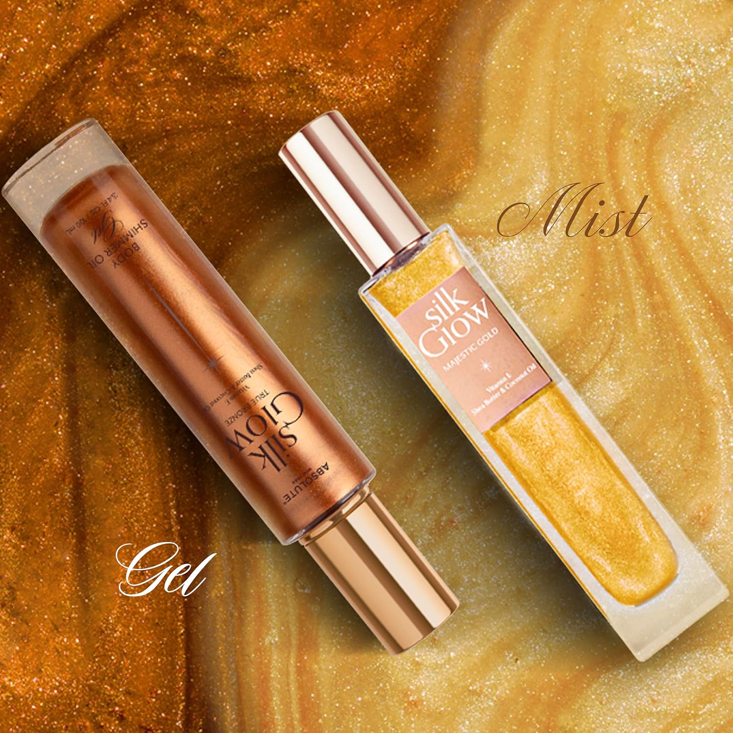 Absolute New York - Silk Glow Shimmer Mist Glow, Radiant, Shimmer Body & Face & Hair, Shea Butter, Coconut Oil, Vitamin E (SBGS15 Majestic Gold Gel, 3.4 fl oz)
