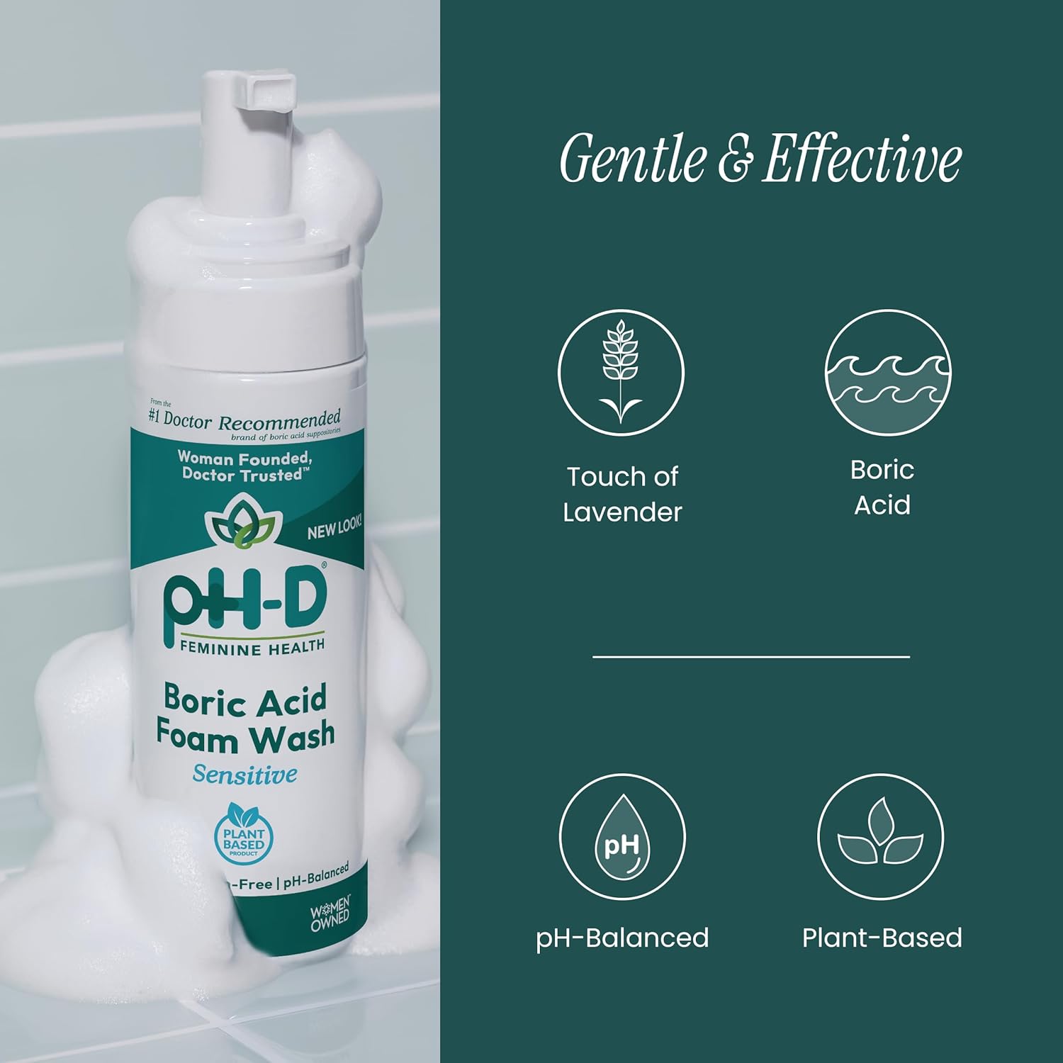 pH-D Feminine Health - Boric Acid Foam Wash - pH-Balanced, Paraben-Free, and Plant-based (Sensitive, 6 Fl Oz (Pack of 1))