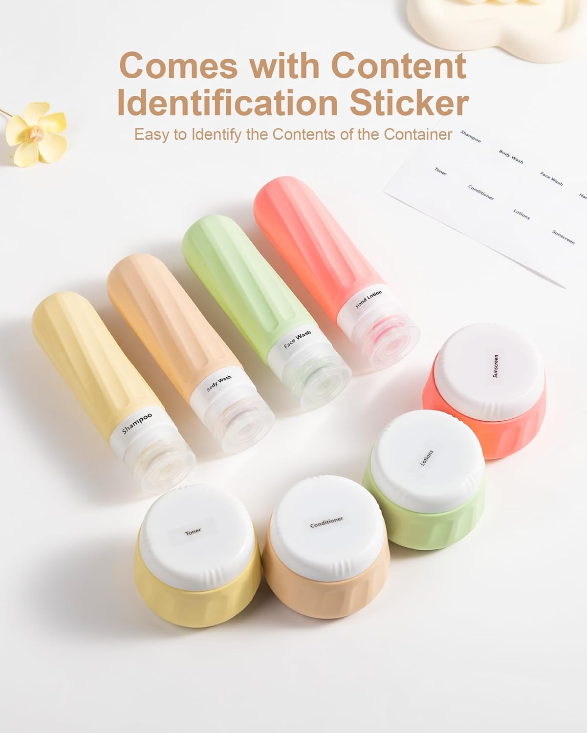 Travel Bottles for Toiletries 8 Pack, Travel Size Toiletries, Tsa Approved Travel Size Containers 3oz, with Travel Essentials Clear Bag, Leak Proof Silicone Squeezable Creams Jars
