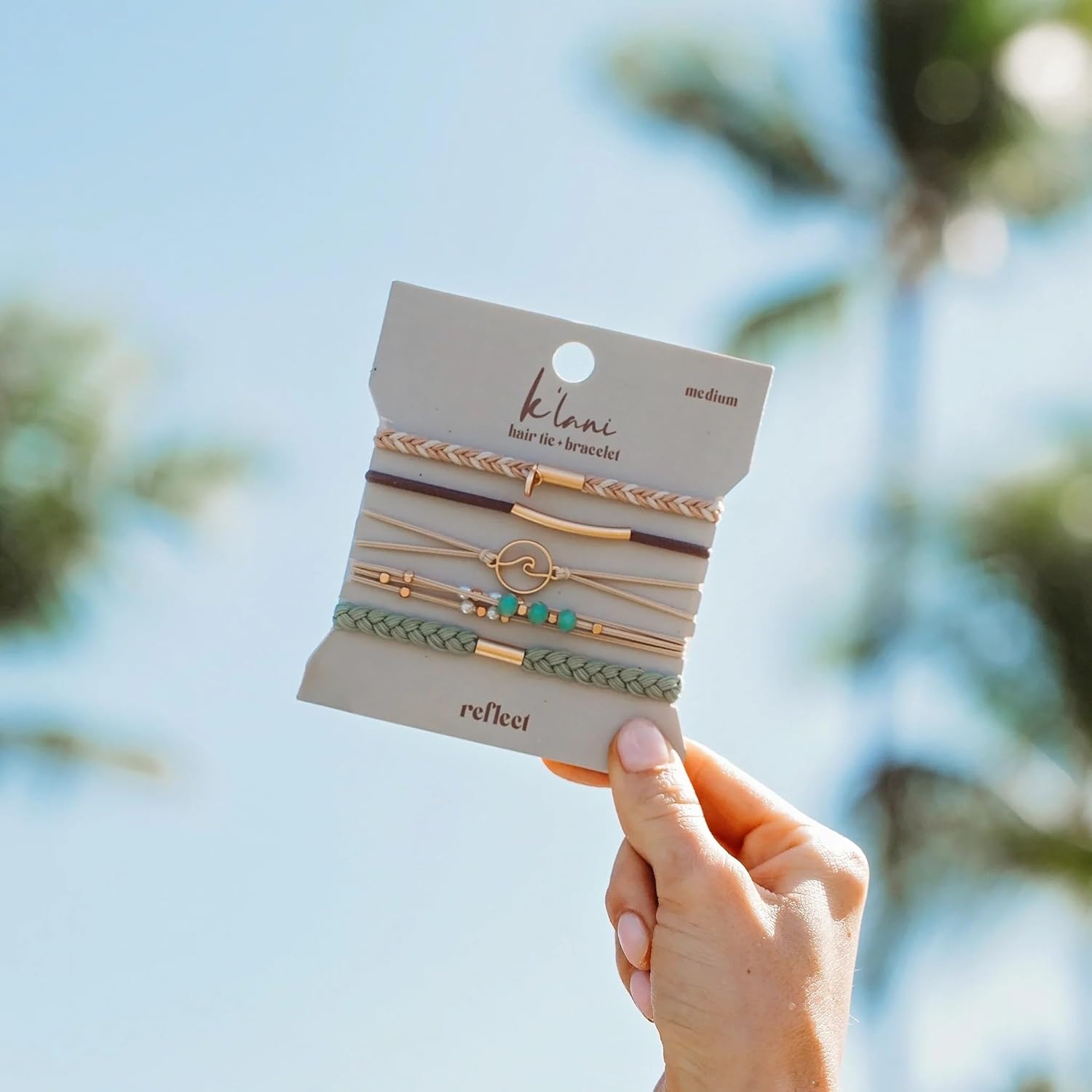 K'lani Reflect Bracelets for Women – Elastic Bracelets and Boho Hair Ties – Cute Hair Ties for Women and Hair Tie Accessories – Stylish Bracelets Boho Style for Hair and Wrist – Set of 5 (Large)