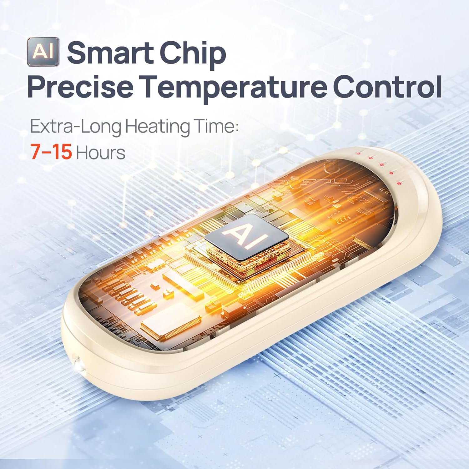 - 【One-Touch Rapid Heating & Long-Lasting Heat】:One-Touch Rapid Heating Within 3 Seconds ,You’ll Experience Instant Warmth in any Cold Environment. Reusable Hand Warmers Provides up to 7-15 Hours of Warmth, Meeting Your Heating Needs Throughout the Day. We Have Intelligent AI Temperature Control Chips That Can Accurately Control the Temperature, Reaches up to 131°F(Note: Sensitivity to Temperature Varies From Person to Person. Be Careful)