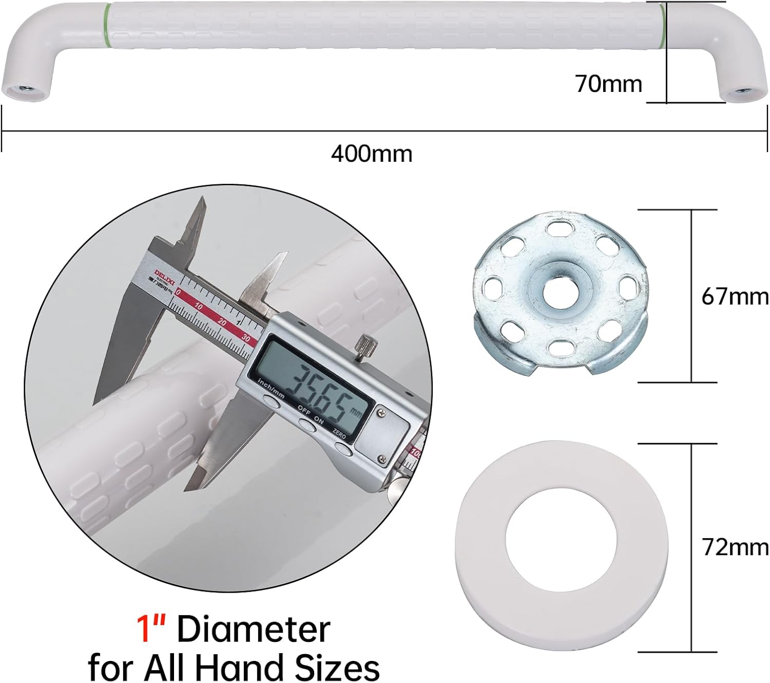 Joyrain 16-inch Bathroom Safety Grab Bar - 500lb Weight Capacity ADA Certified Anti-Slip Handle for Shower/Tub/Toilet, Elderly & Disabled Assist (White(2-Pack), 16 inches (Overall Length 400mm))