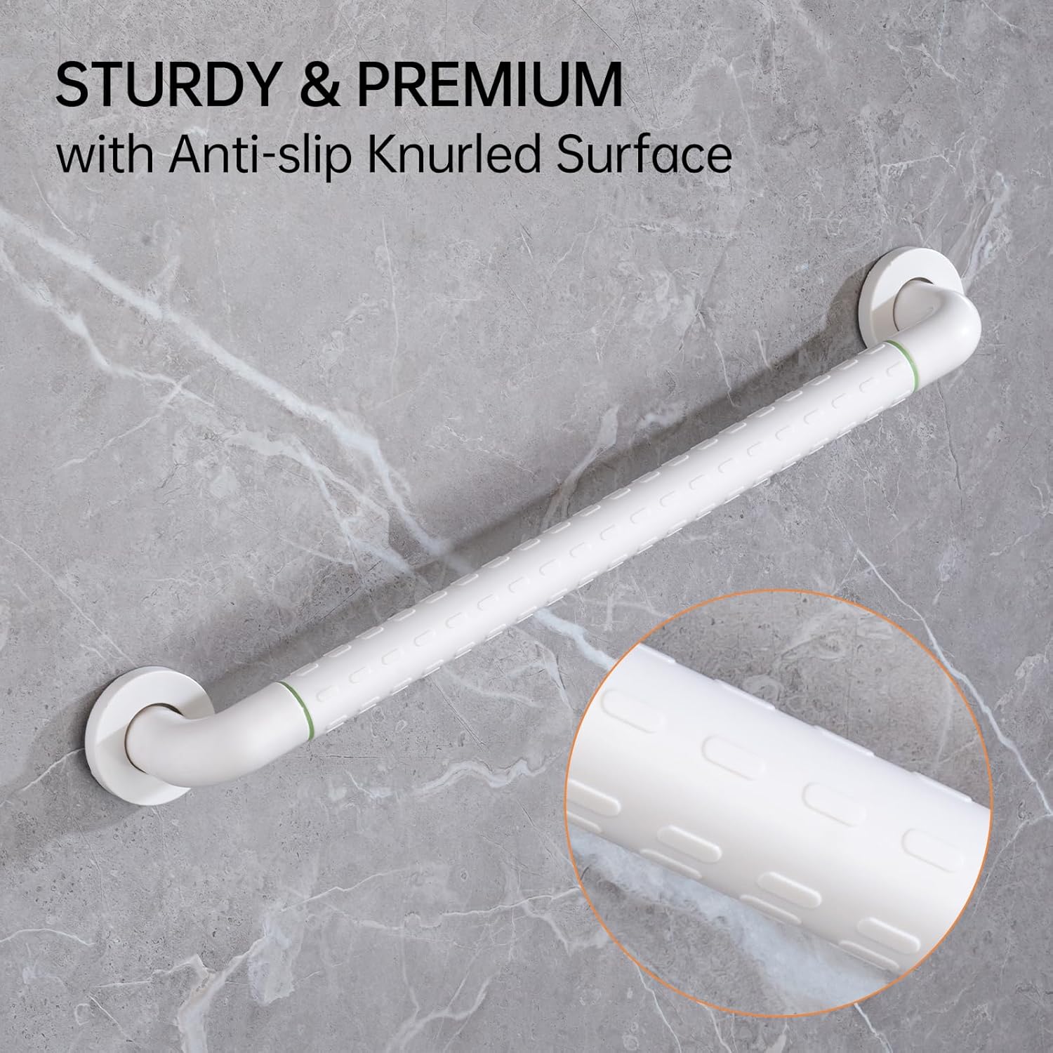 - ULTIMATE NON-SLIP PERFORMANCE Unlike ordinary smooth metal bars, our innovative grab bar features a deeply textured knurled surface pattern. This advanced grip technology ensures maximum traction even when wet, giving users confident control during showers or when standing from seated positions.