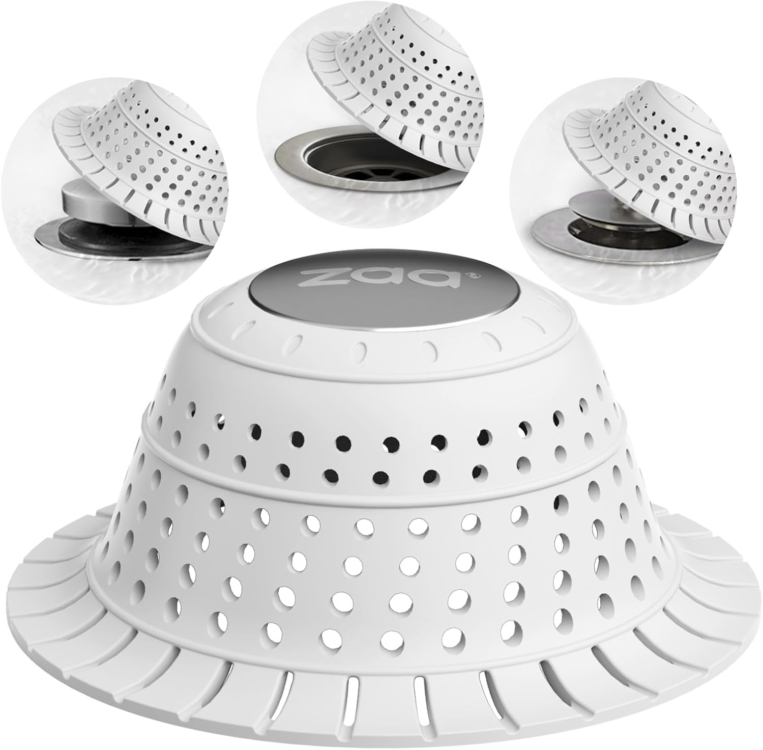 zaa Bathtub Drain Hair Catcher, Premium Silicone Collapsible 1 Pack Drain Protector for Pop-Up and Regular Drains of Shower, Tub, Bathroom, Sink, Light Gray