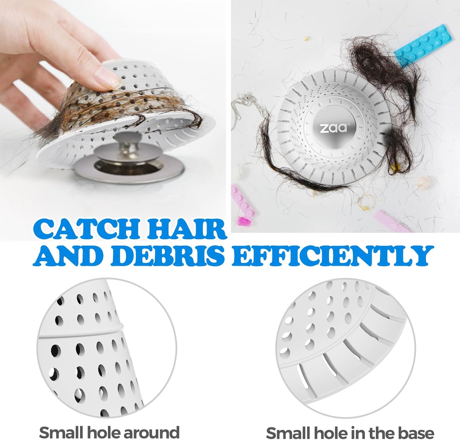 - 【Upgrade to Catch Efficiently & Keep Drainage】Catch annoying hair better&keep drainge by small holes around and in the base. These upgrade designs will prevent clogging better and reduce to use expensive sewers chemicals.