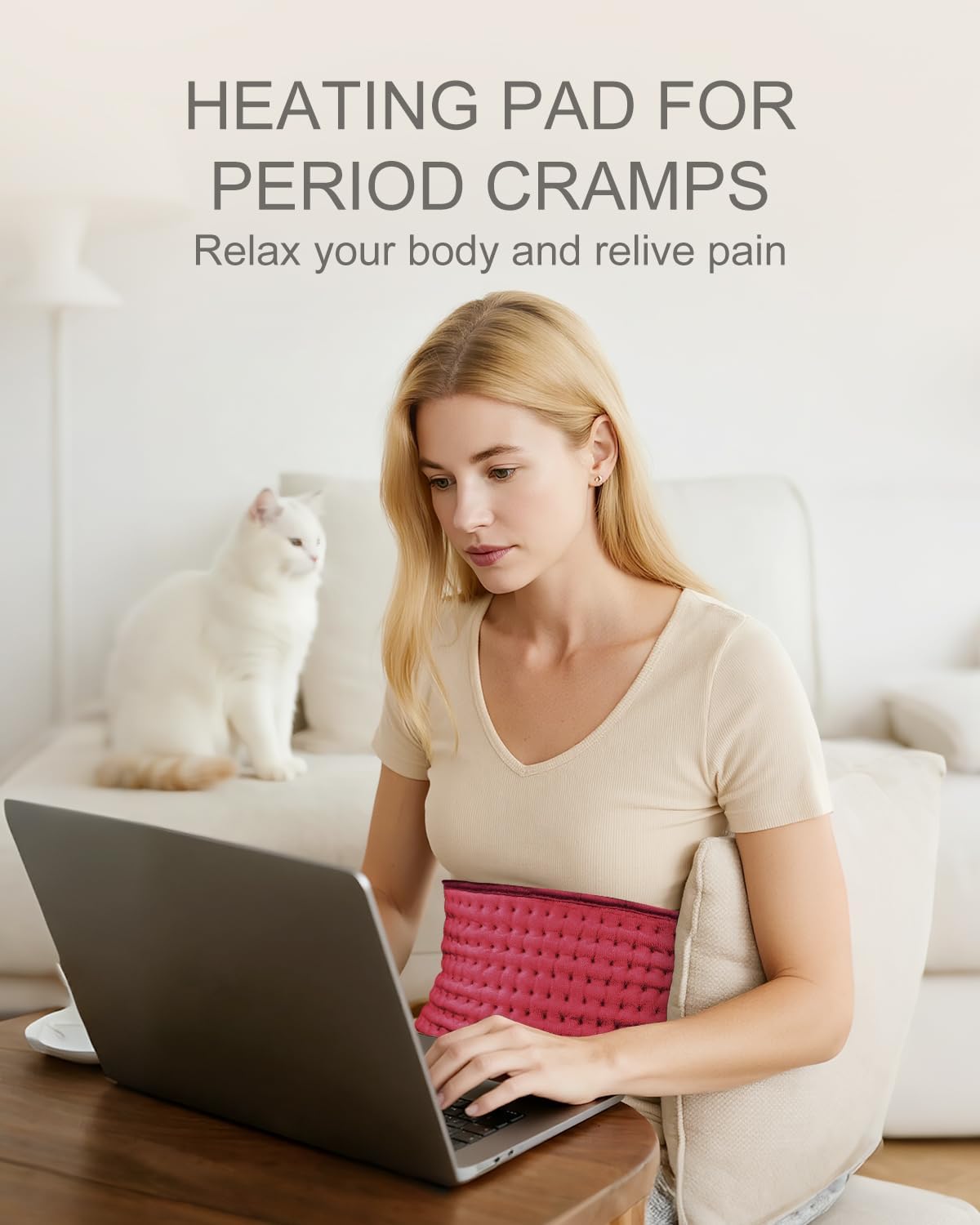 - Heating Pad for Pain Relief: 12"x24" heating pad for period cramps & back pain relief can be flexibly used for various parts of the body. Electric heat pad provides targeted heat therapy to help temporarily relieve pain from menstrual cramps, sore muscles, and help ease muscle tension for the back, neck, shoulders, arms, abdomen, legs.This is a useful white elephant gifts & stocking stuffers for adults.