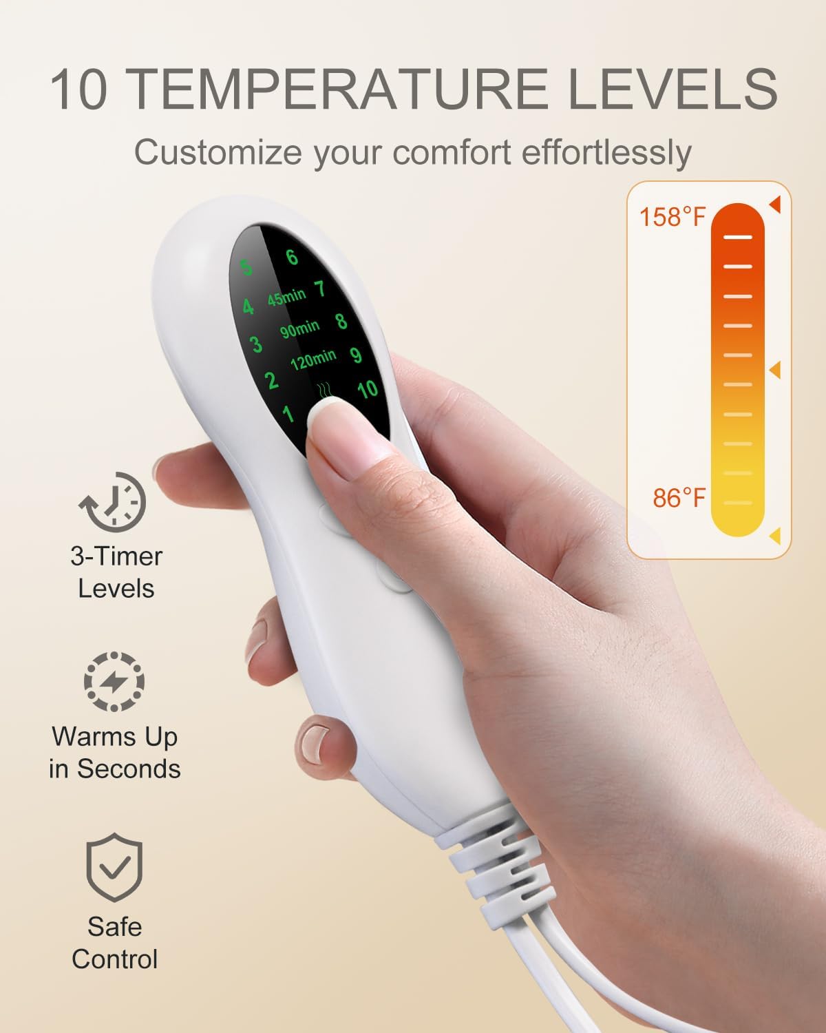 - 10 Heat Options & 3 Timer Settings: The portable heating pad features 10 temperature settings (86℉-158℉) and 3 timer options (45/90/120 mins) to meet your different needs. With upgraded fast heating technology, it can quickly reach the treatment temperature and immediately relax muscles. It's truly an ideal relaxation gifts for women men to help them relieve fatigue after a day work.