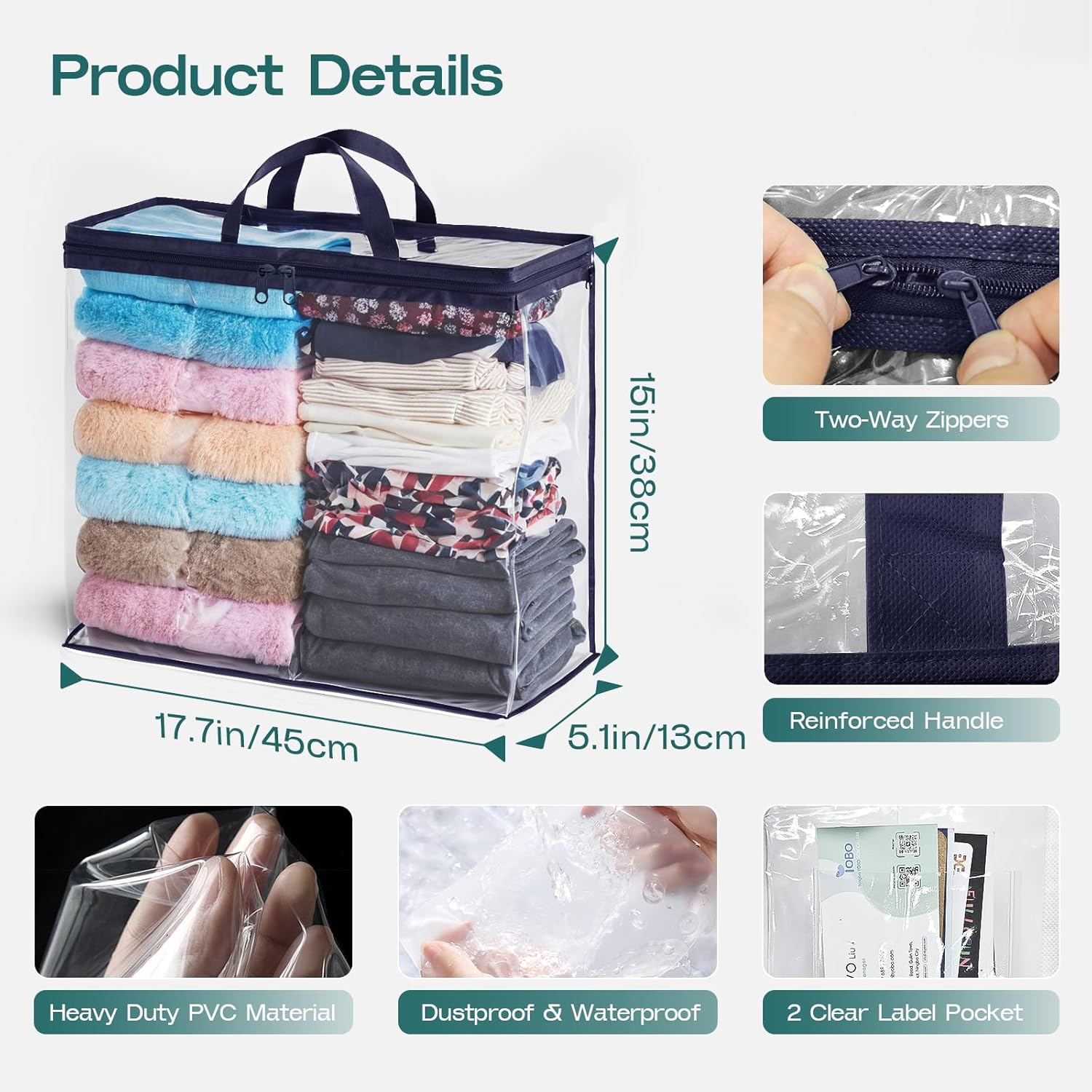 - ăTransparency Designăthese zippered storage bags featuring a see-through design, are waterproof and puncture-resistant, sturdy, with the highest level of transparency, you can view the contents of the storage box, quickly find and differentiate your blankets, clothes, quilts, towels, pillows, shoes, books, toys, DVD & CD