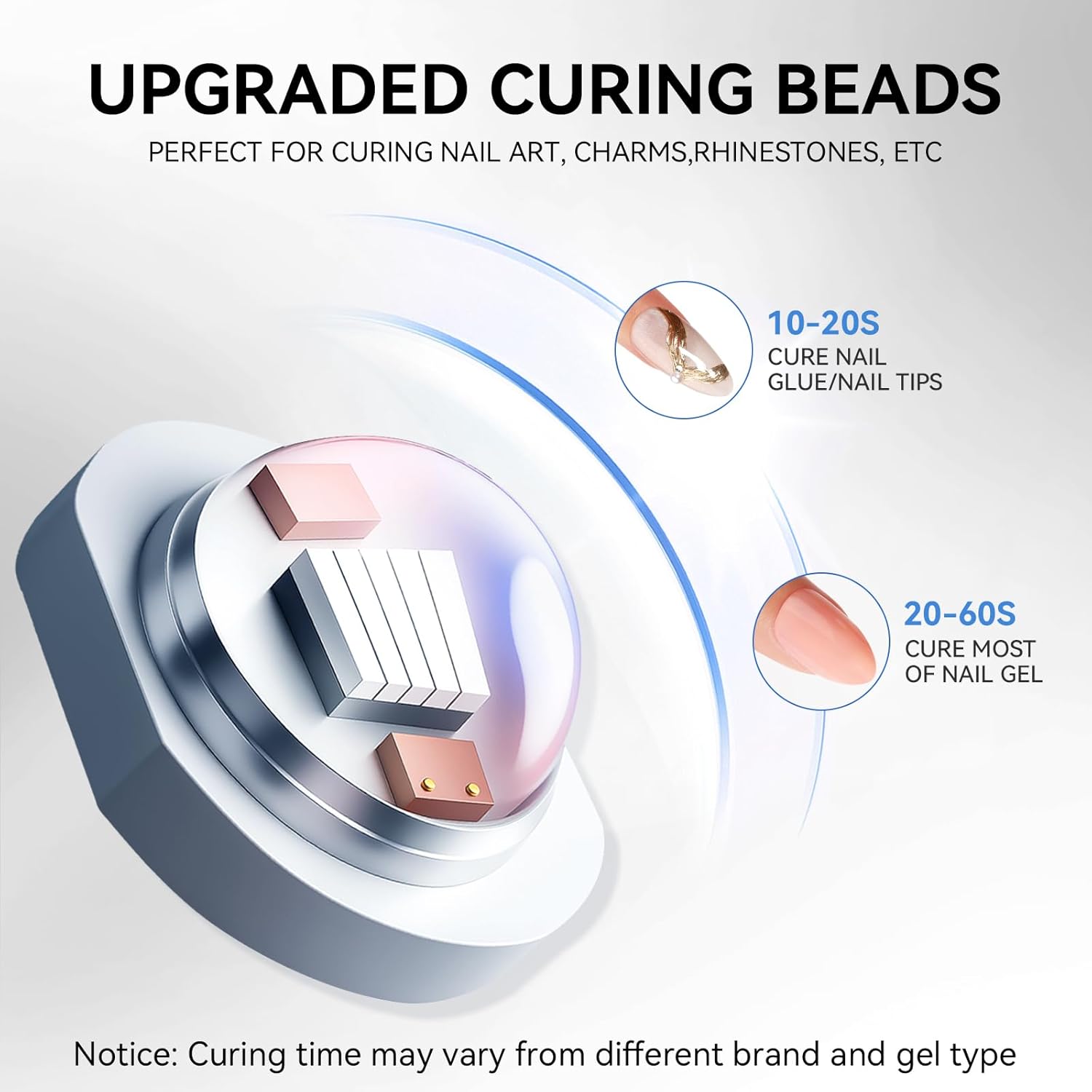 - Fast & Efficient Curing in Seconds: Equipped with powerful UV LED beads, this mini nail lamp cures nail tips, most gel polishes, builder gels, glue gels, and rhinestone gels in just 8–10 seconds, depending on layer thickness. Save time while achieving salon-quality nails.