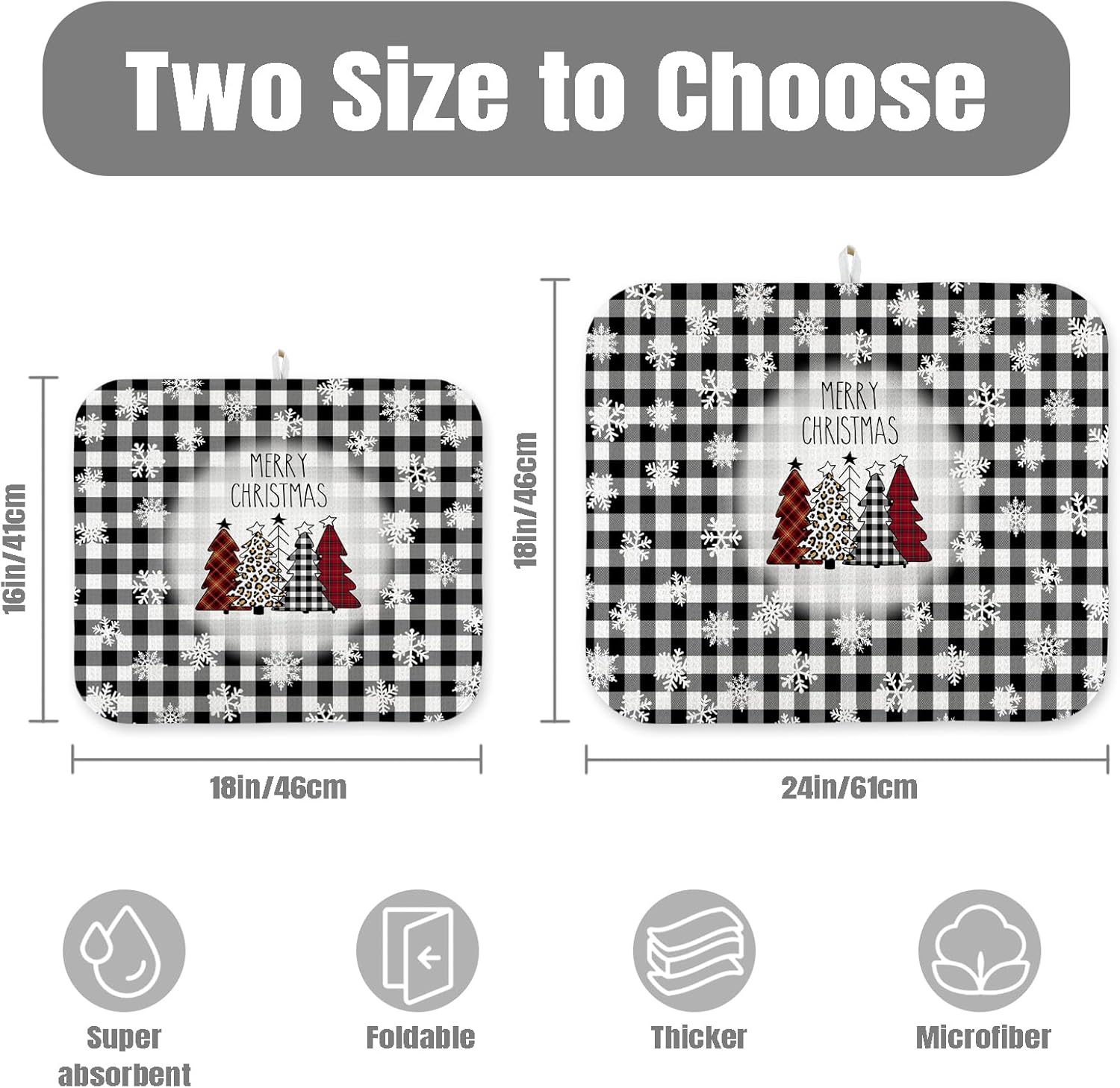 Dish Drying Mat for Kitchen Counter Large 18" x 24" Buffalo Plaid Christmas Tree Absorbent Microfiber Dishes Drainer Rack Mats Pad Reusable Washable
