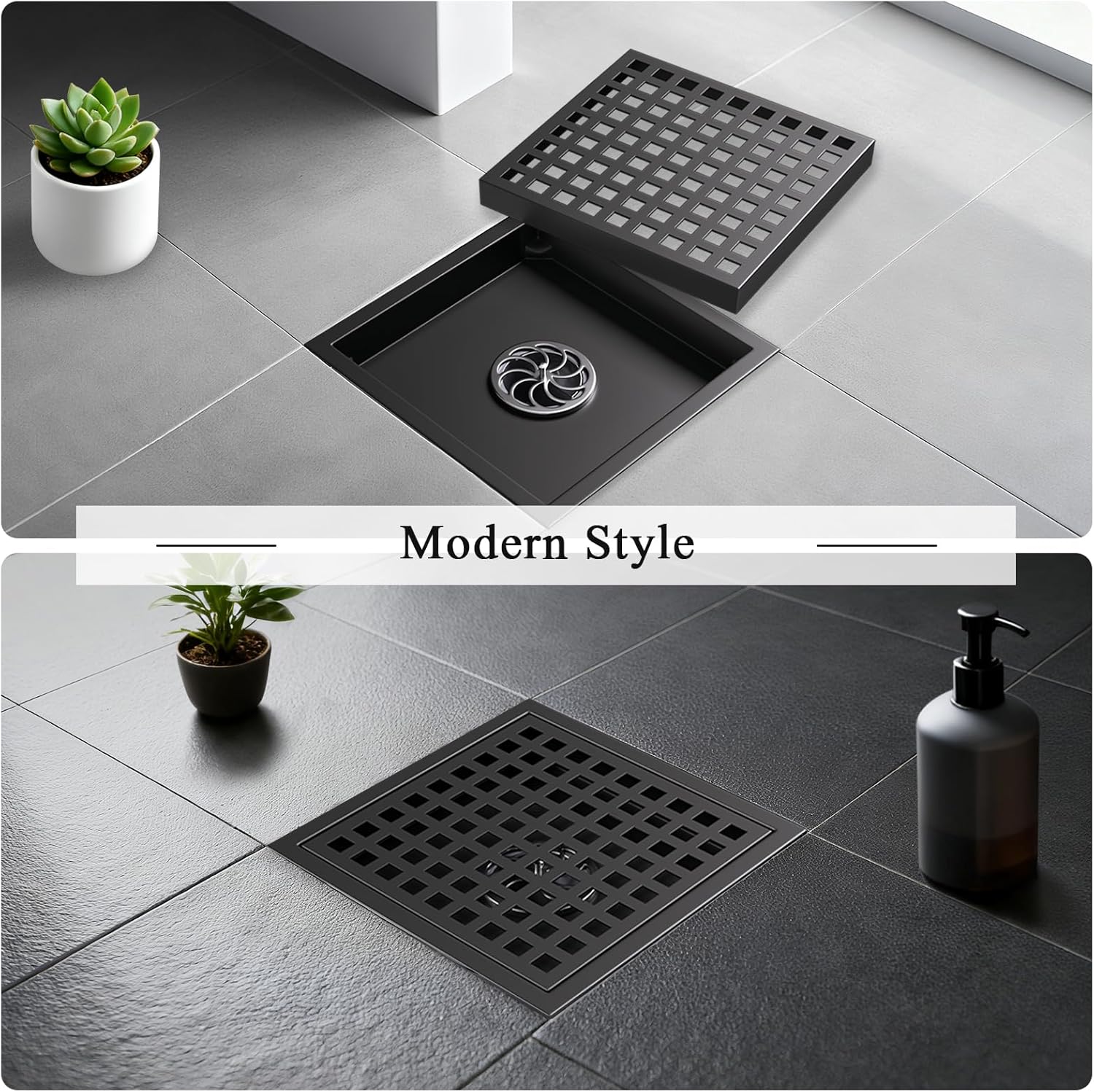 - 【Premium Stainless Steel】 Square black shower drain crafted from durable, high-quality SUS304 stainless steel with a PVC-coated surface that resists peeling. Offers strong corrosion and oxidation resistance for long-lasting, stable performance.