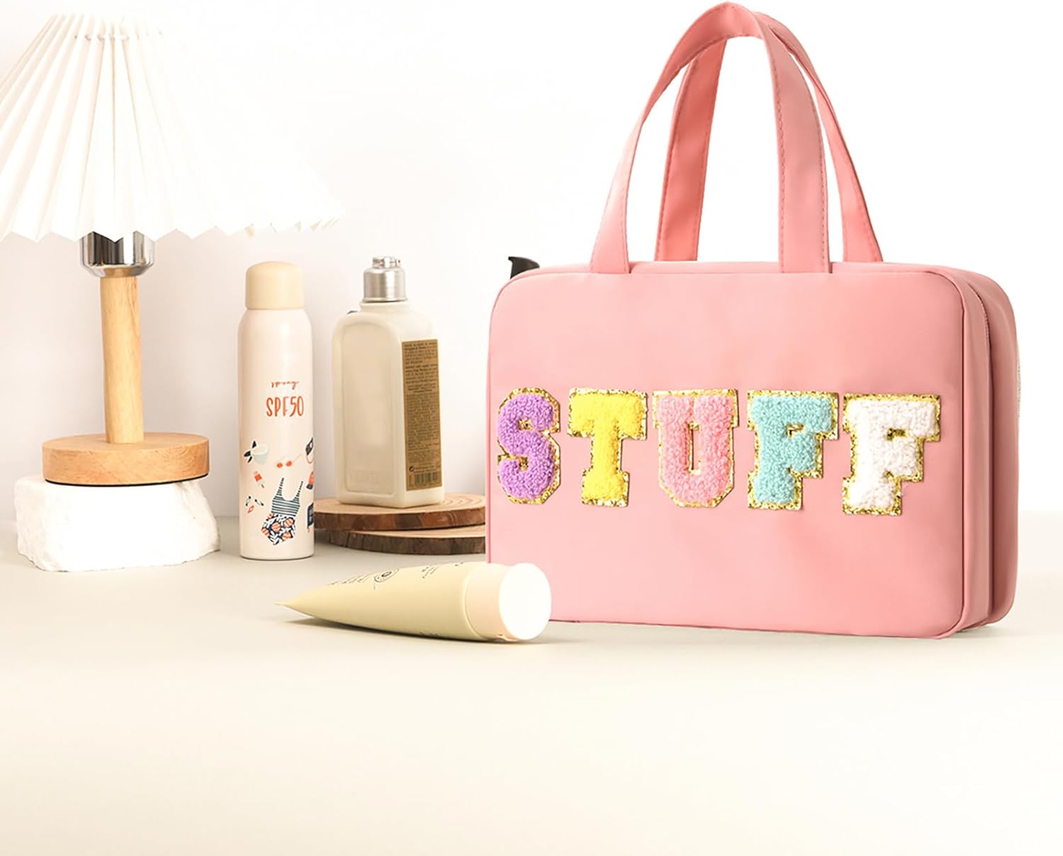 - HIGH QUALITY: This toiletry bag is made of high-quality polyester with strong stitching and durable materials. It's durable, easy to use, waterproof, stain-resistant, and scratch-resistant. Fashion trends chenille letter cosmetic bag, preppy, more women love it. Its stylish design will make you love it even more and make your life more beautiful