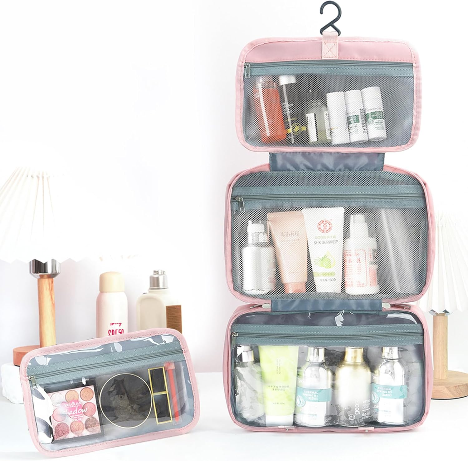 - UNIQUE DESIGN: The interior and exterior are designed with a user-friendly design, upgraded waterproofing, and transparent PVC for easy access. When unfolded, four independent compartments, separating wet and dry storage. Zippered, it provides secure storage and keeps toiletries, makeup, and accessories organized. The compartment design allows for easy viewing. An internal hanging hook makes it easy to hang and use. The detachable, multifunctional strap design makes it durable and practical