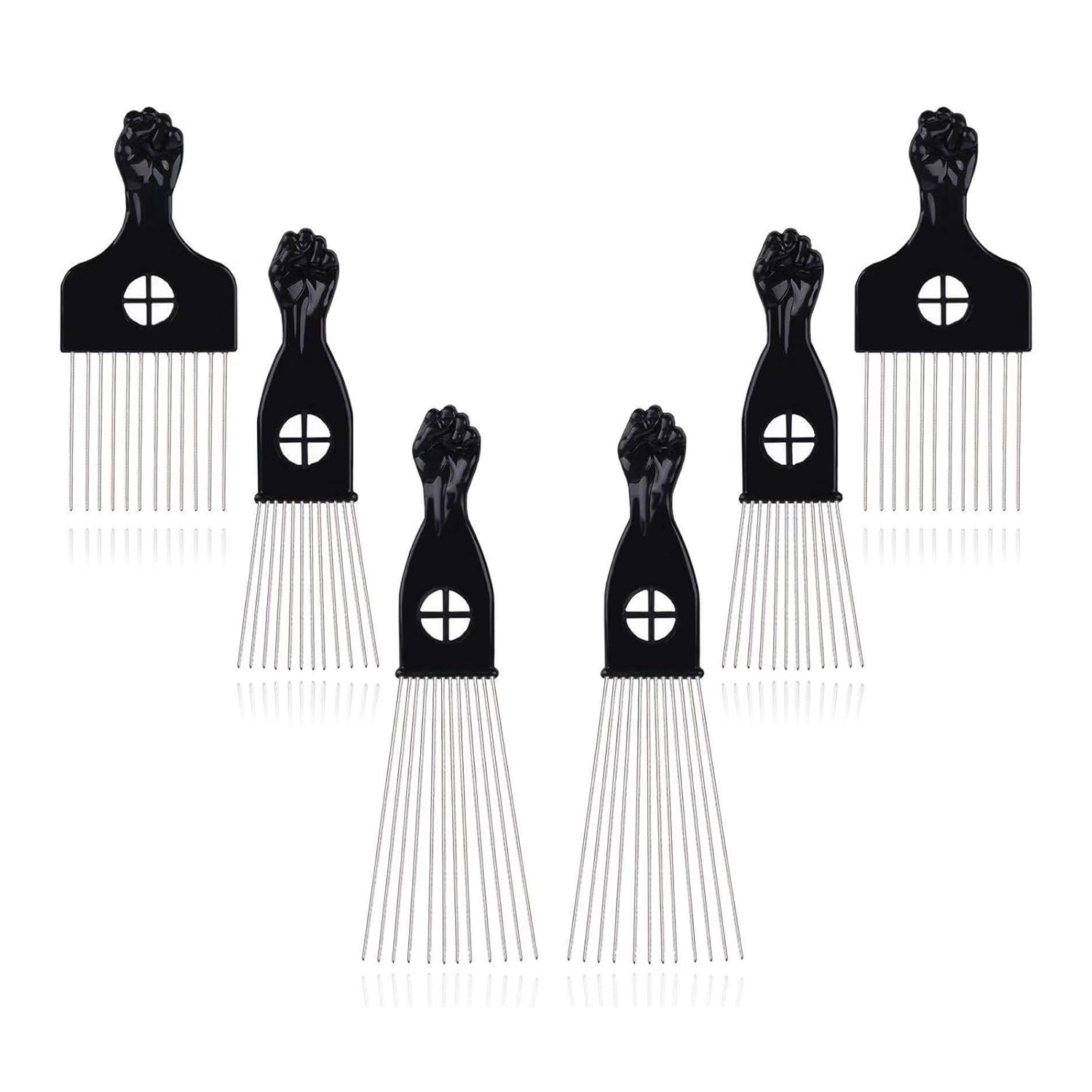 - Hair comb, black fist metal pick, Afro hair pick