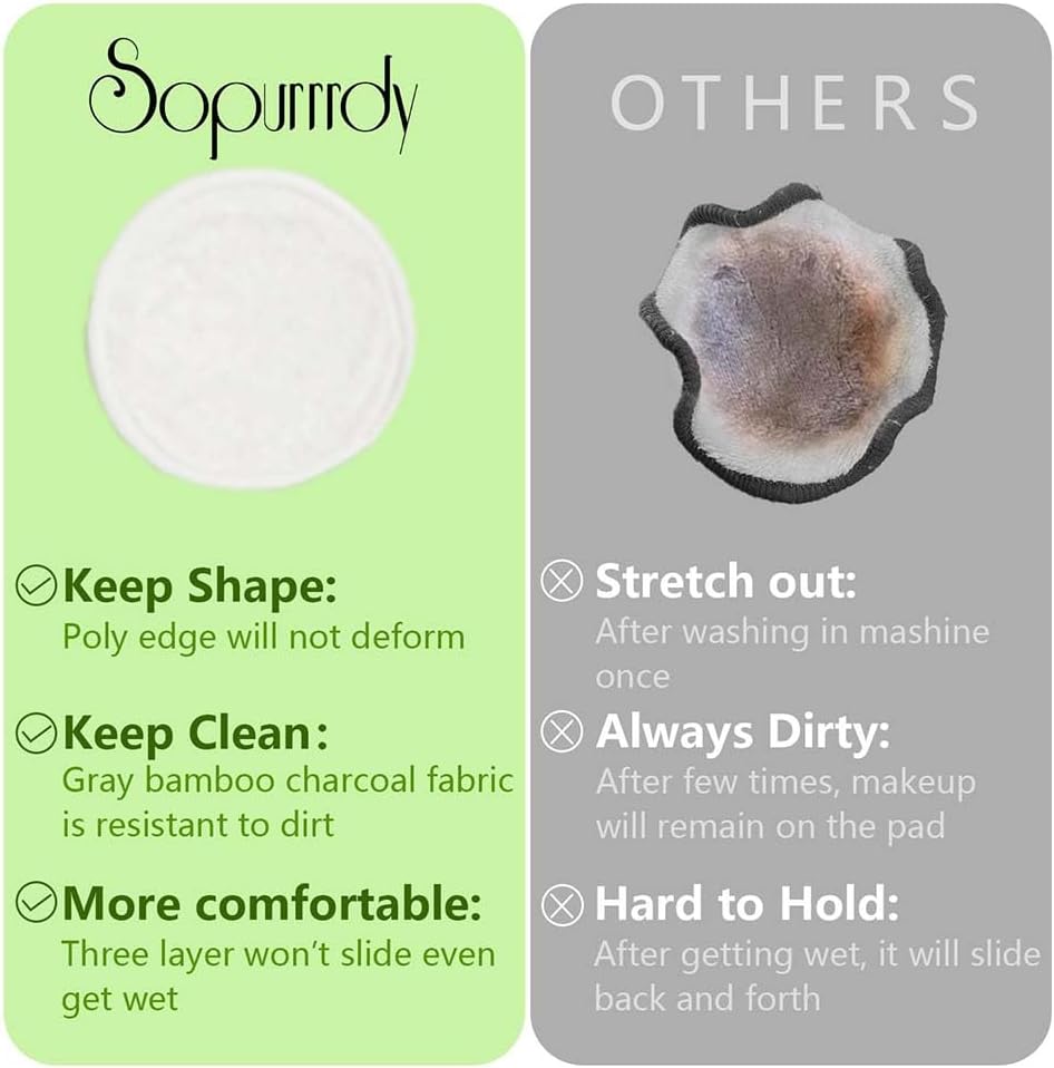 - SOFT & NATURAL BAMBOO REUSABLE COTTON CHARCOAL ROUNDS PADS-Made of Special Fabric Bamboo, super soft pads are great to do a gentle exfoliation to keep smoother skin, clean deep into your pores and effectively pull all of makeup, sunscreen, chemicals, cosmetics out, it is great facial remover pads, eye shadow makeup remover, mascara makeup remover, lipstick etc..
