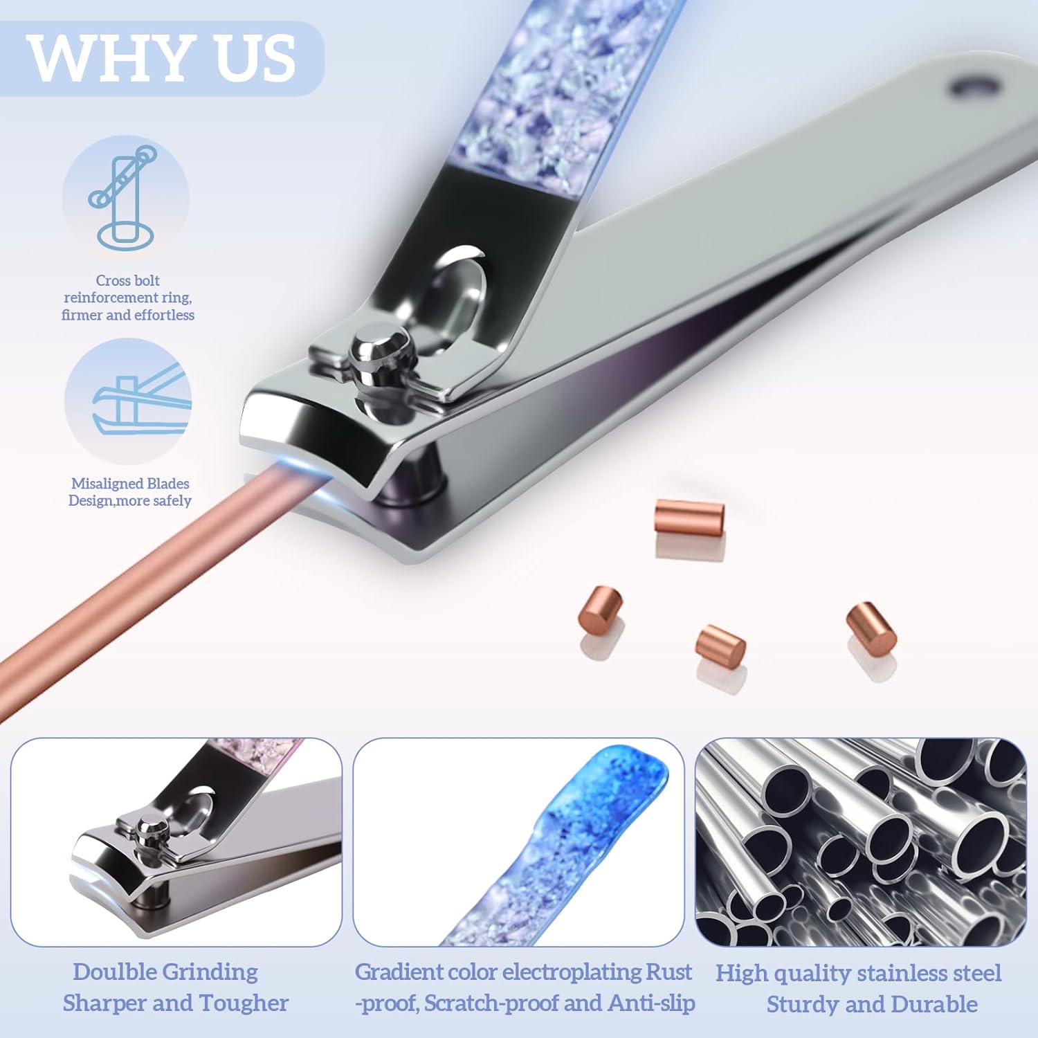 - Premium Stainless Steel Construction –Manicure kit for women crafted from high-quality stainless steel, each tool is sharp, rust-resistant, and built to last. The precision blades ensure clean, smooth cuts without splitting nails, while the sturdy design guarantees long-term durability for daily use and will not fade.