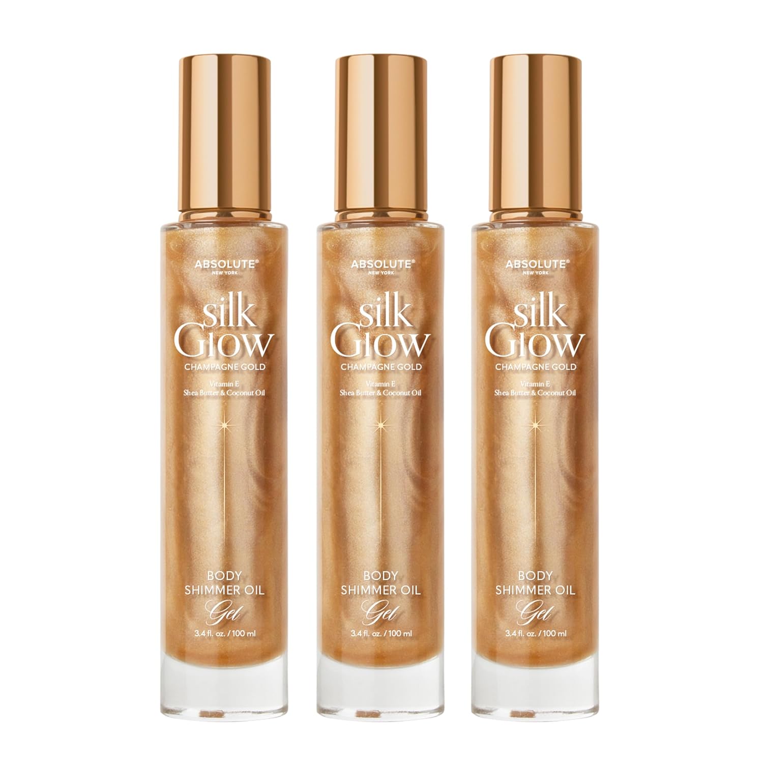 Absolute New York - Silk Glow Shimmer Mist Glow, Radiant, Shimmer Body & Face & Hair, Shea Butter, Coconut Oil, Vitamin E (SBGS05 Champagne Gold Oil Gek (Set of 3), 3.4 fl oz)