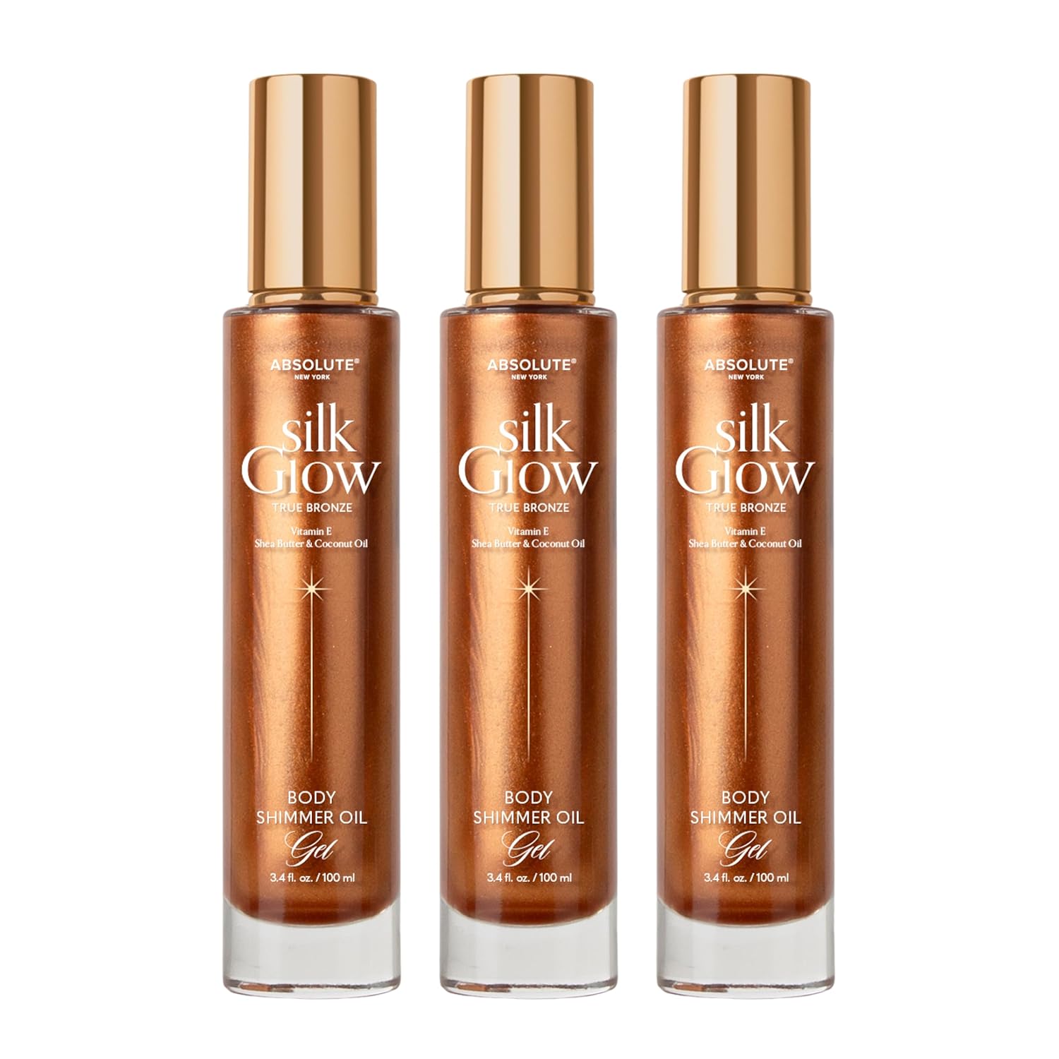 Absolute New York - Silk Glow Shimmer Mist Glow, Radiant, Shimmer Body & Face & Hair, Shea Butter, Coconut Oil, Vitamin E (SBGS06 True Bronze Oil Gel (Set of 3), 3.4 fl oz)