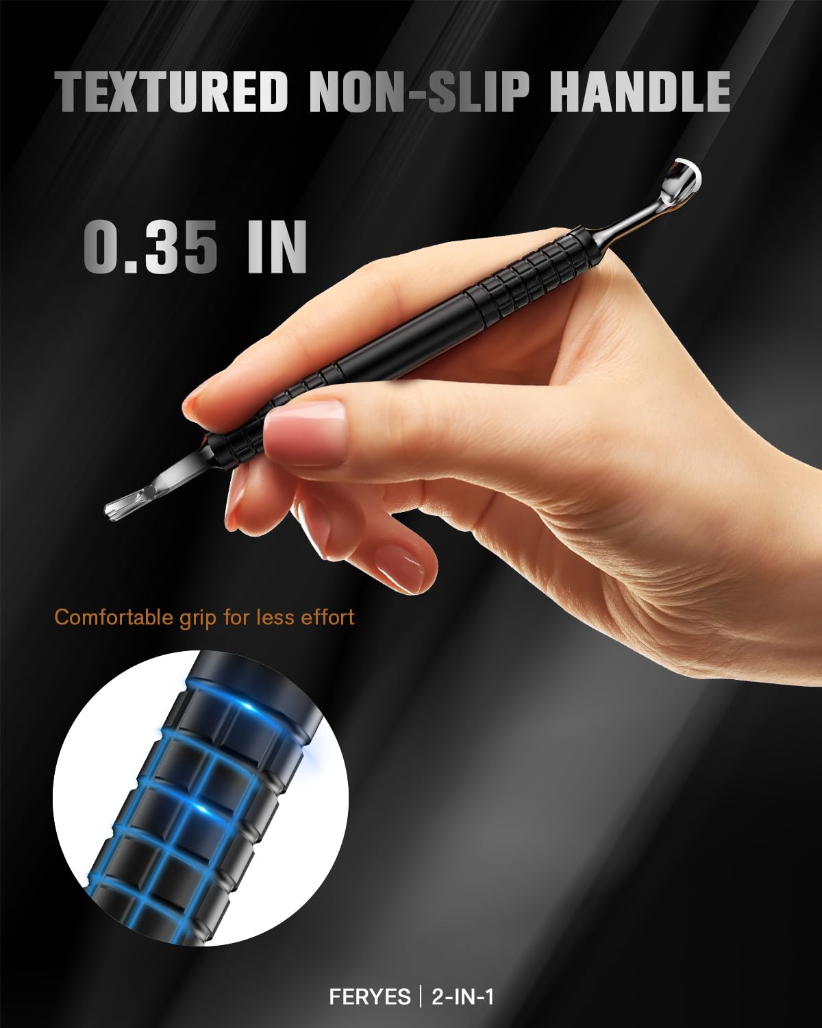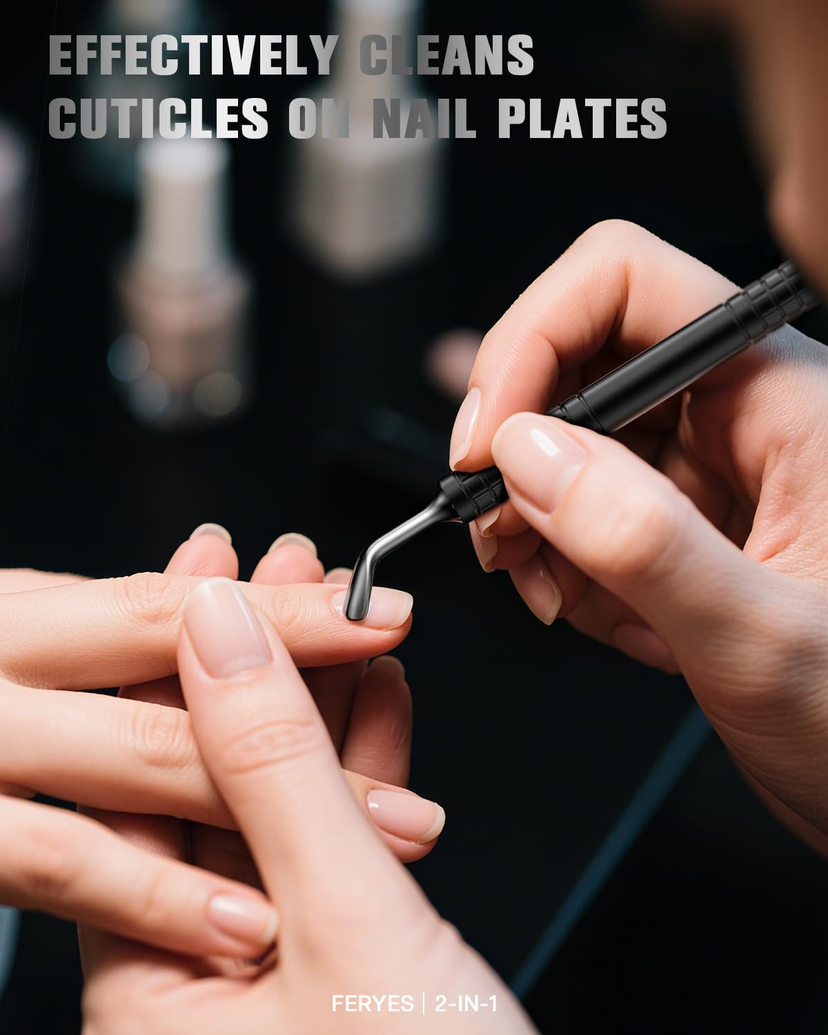 FERYES Upgraded Horseshoe Shape Cuticle Pusher with Fork, 2-in-1 Cuticle Remover Tool, Stainless Steel Cuticle Trimmer Nail Care Tool for Manicures- Black(5.6 Inches)