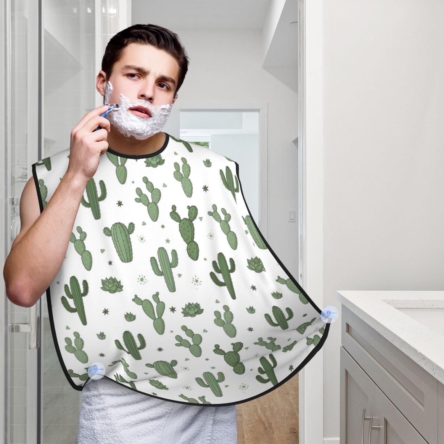 Adjustable Non-Stick Beard Apron, Hair Catcher Cape for Shaving Grooming, Waterproof with Suction Cups Men, Floral Cactus Shave Bib