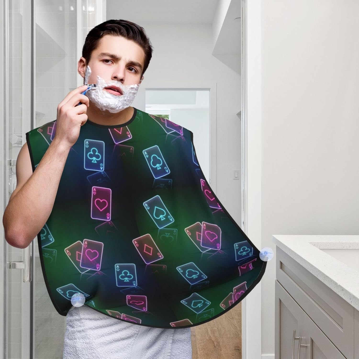 Non-Stick Beard Shaving Bib, Hair Catcher Apron with Suction Cups, Waterproof Grooming Tool for Men Husband, Ace of Poker Card Style Neon Black Shave Bib
