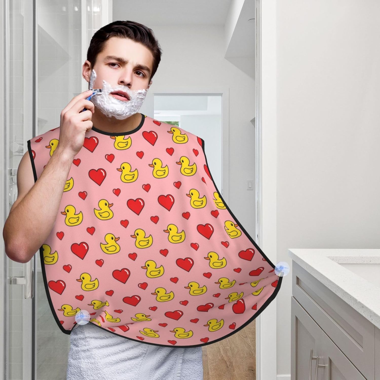 Beard Trimming Hair Catcher, Pink Heart Polka Dots Yellow Rubber Ducks Shave Bib, Non-Stick Bib Apron Waterproof, Shaving Tool for Men for Husband Father’s Day