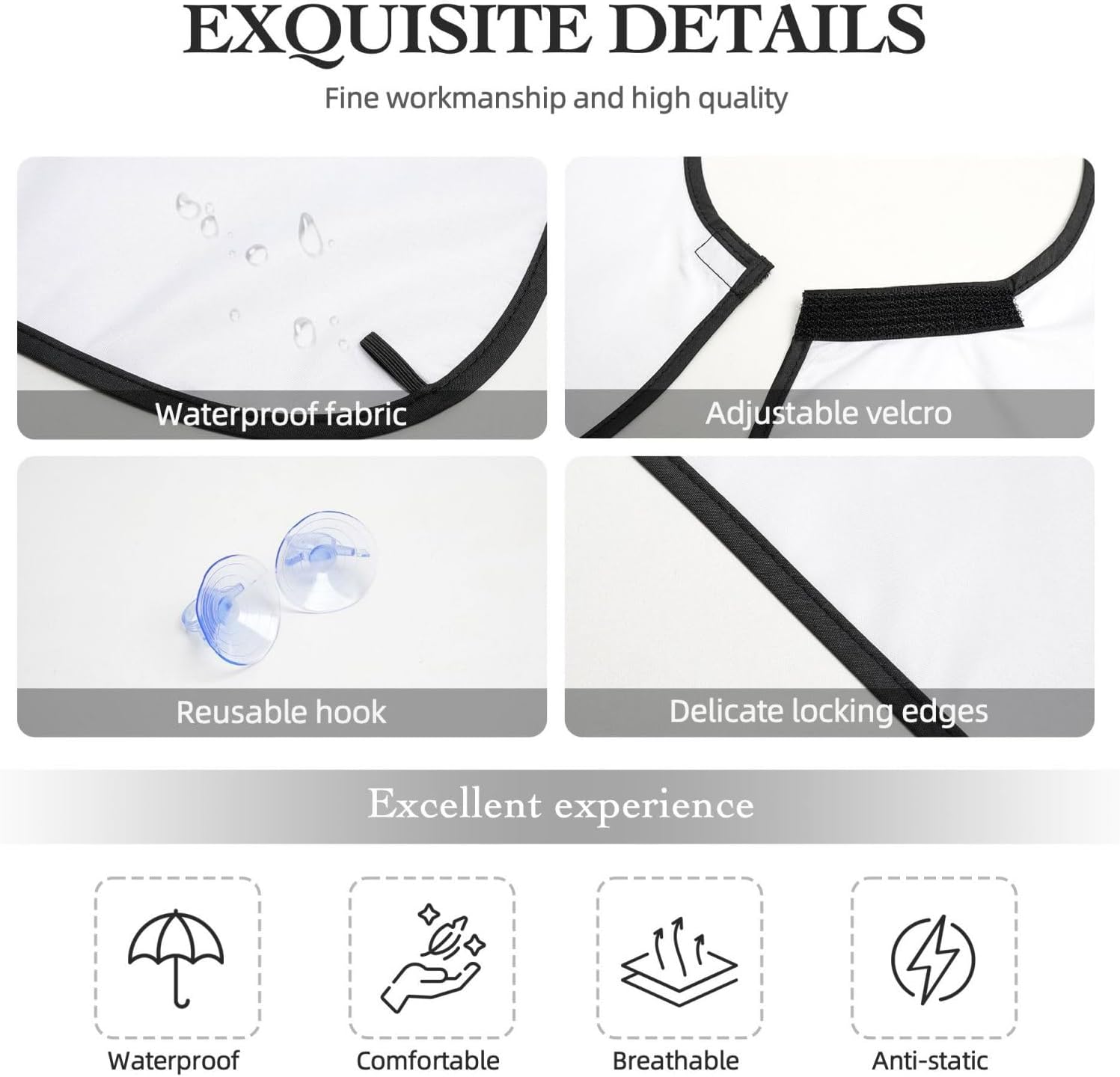- Ideal Size & Secure Fit for Comfort: Generously sized at 42.1 in x 28.7 in with an adjustable neck (20.5-22.4 in) bib comfortably fits all body types. Includes 3 strong suction cups for stable mirror attachment and a PVC storage bag (including 1 carabiner) for compact organization
