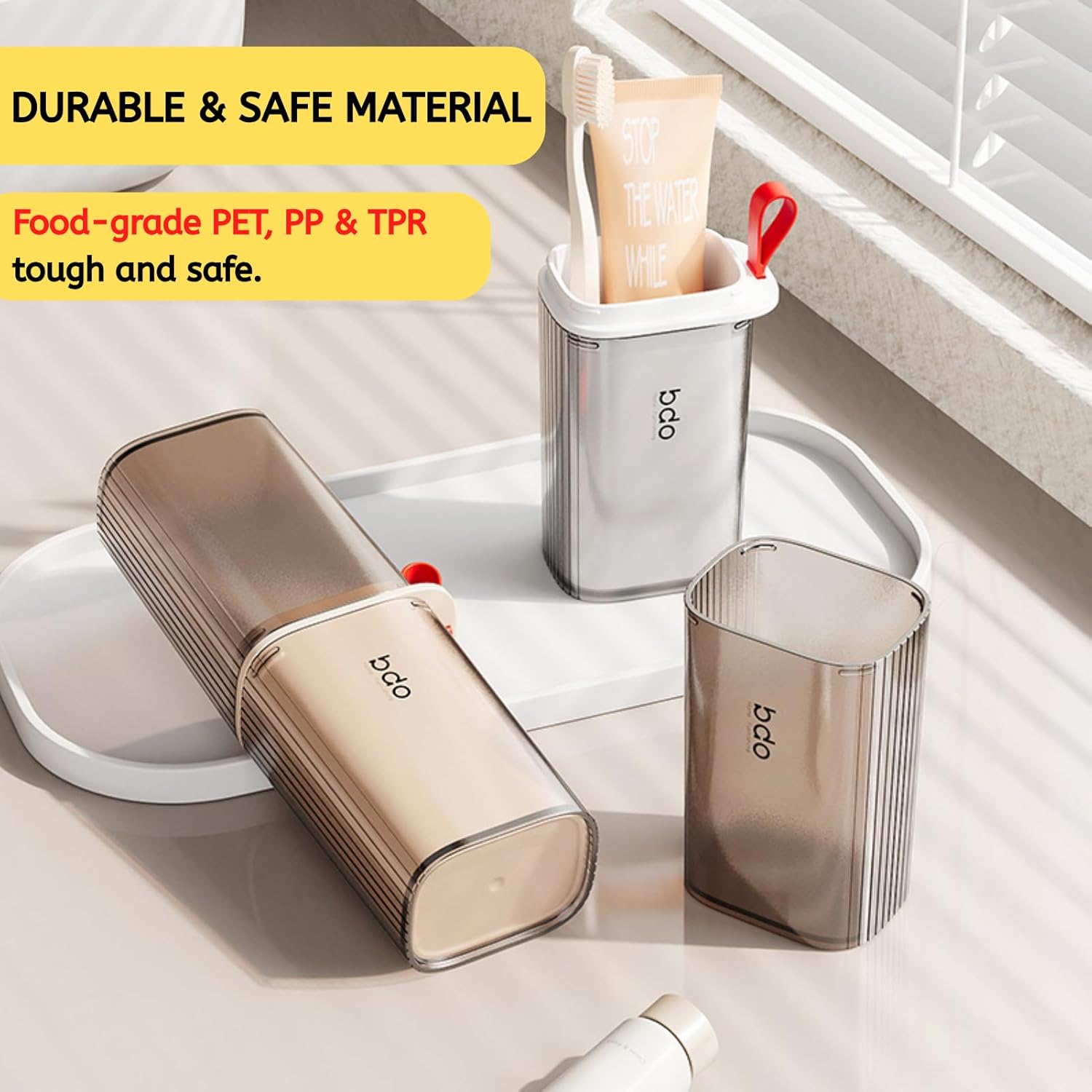 - Two-in-One Design Toothbrush Case: Use the top half as a cup! It’s both a holder for your toothbrush and toothpaste and a cup to rinse with. Super handy for brushing your teeth anywhere.
