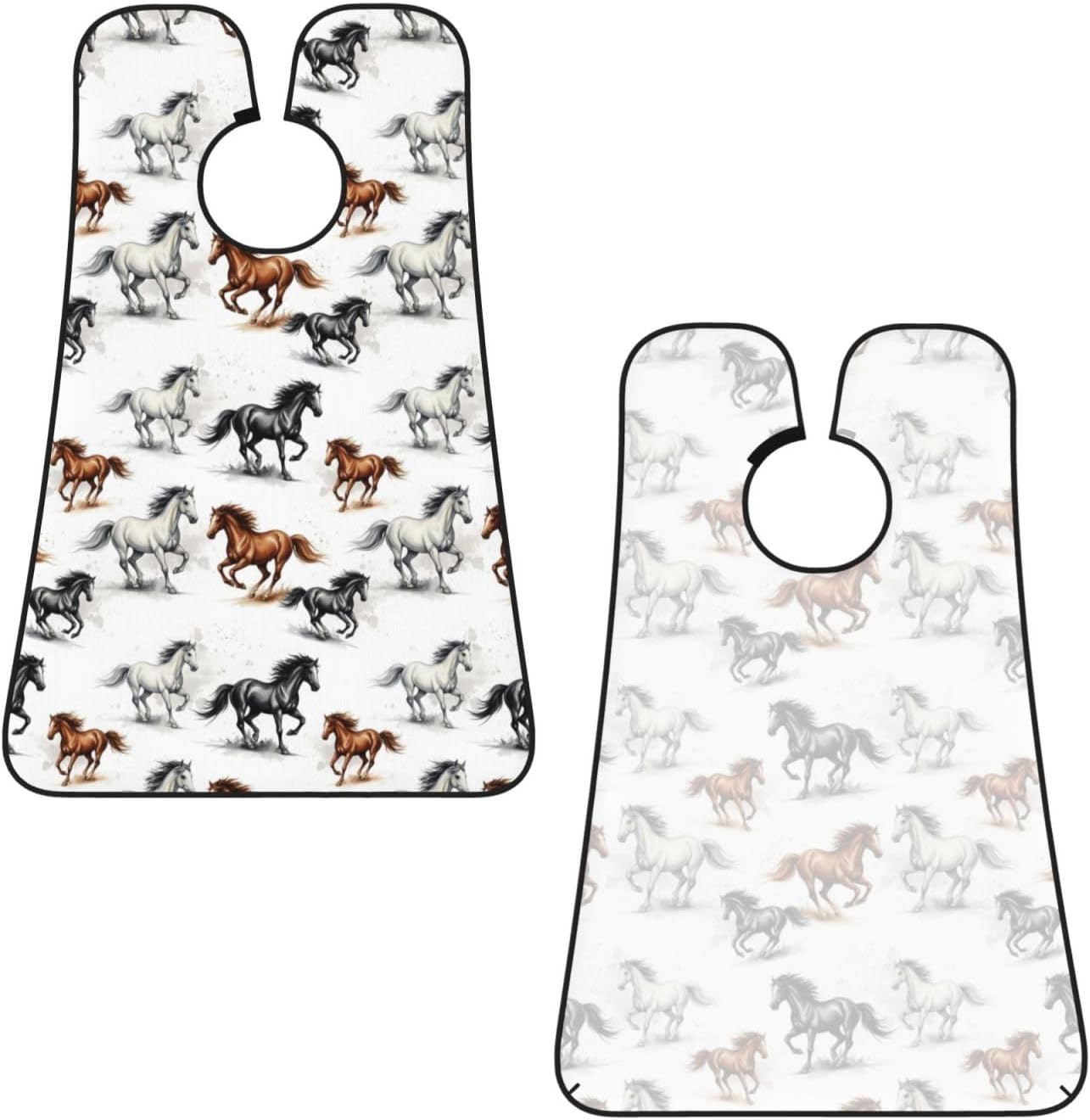 Beard Grooming Cape, Waterproof Hair Catcher for Shaving Trimming, Non-Stick Bib Apron Gifts for Dad Men, Watercolor Wild Horses Shave Bib
