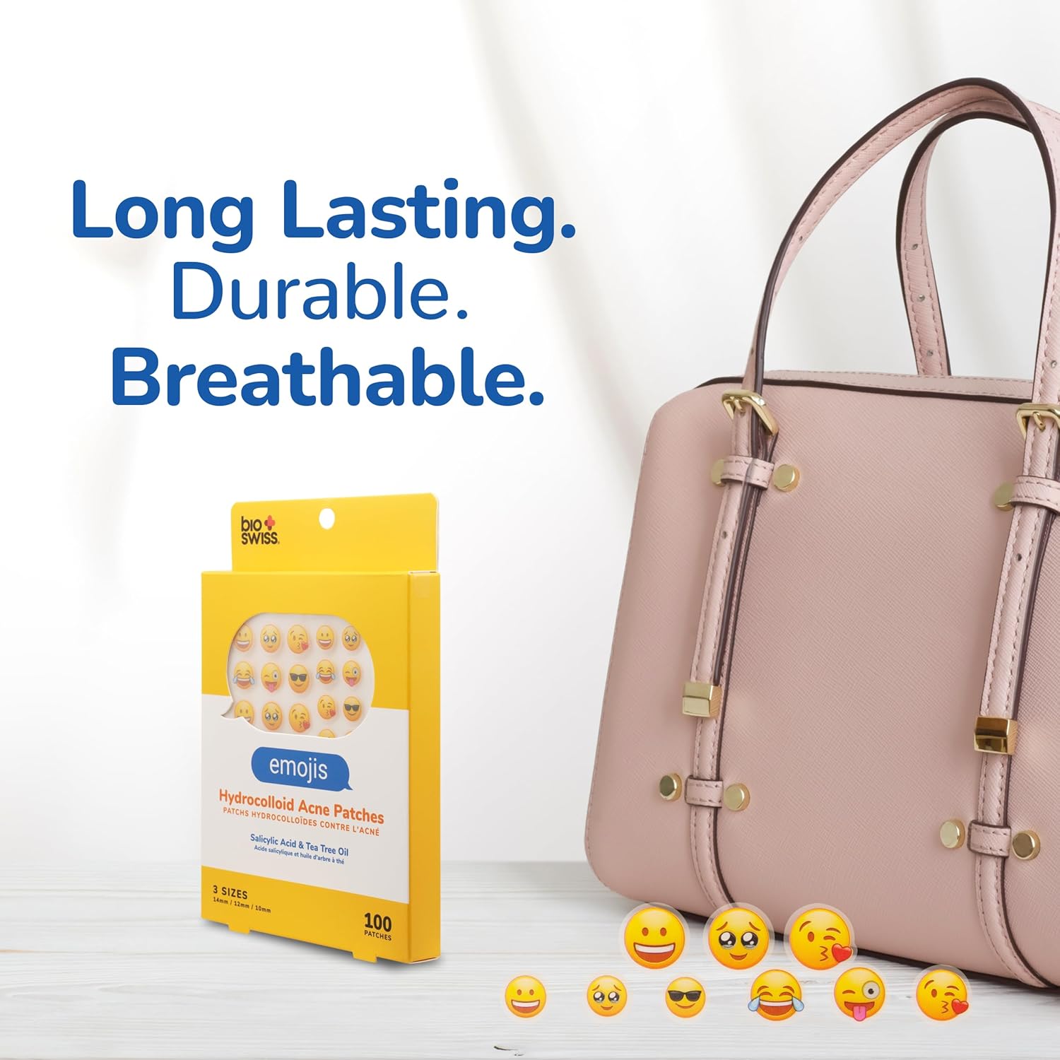 BioSwiss Pimple Patches, Emojis Patch for Zits and Blemishes, Hydrocolloid Spot Stickers for Face and Skin, 100 Count