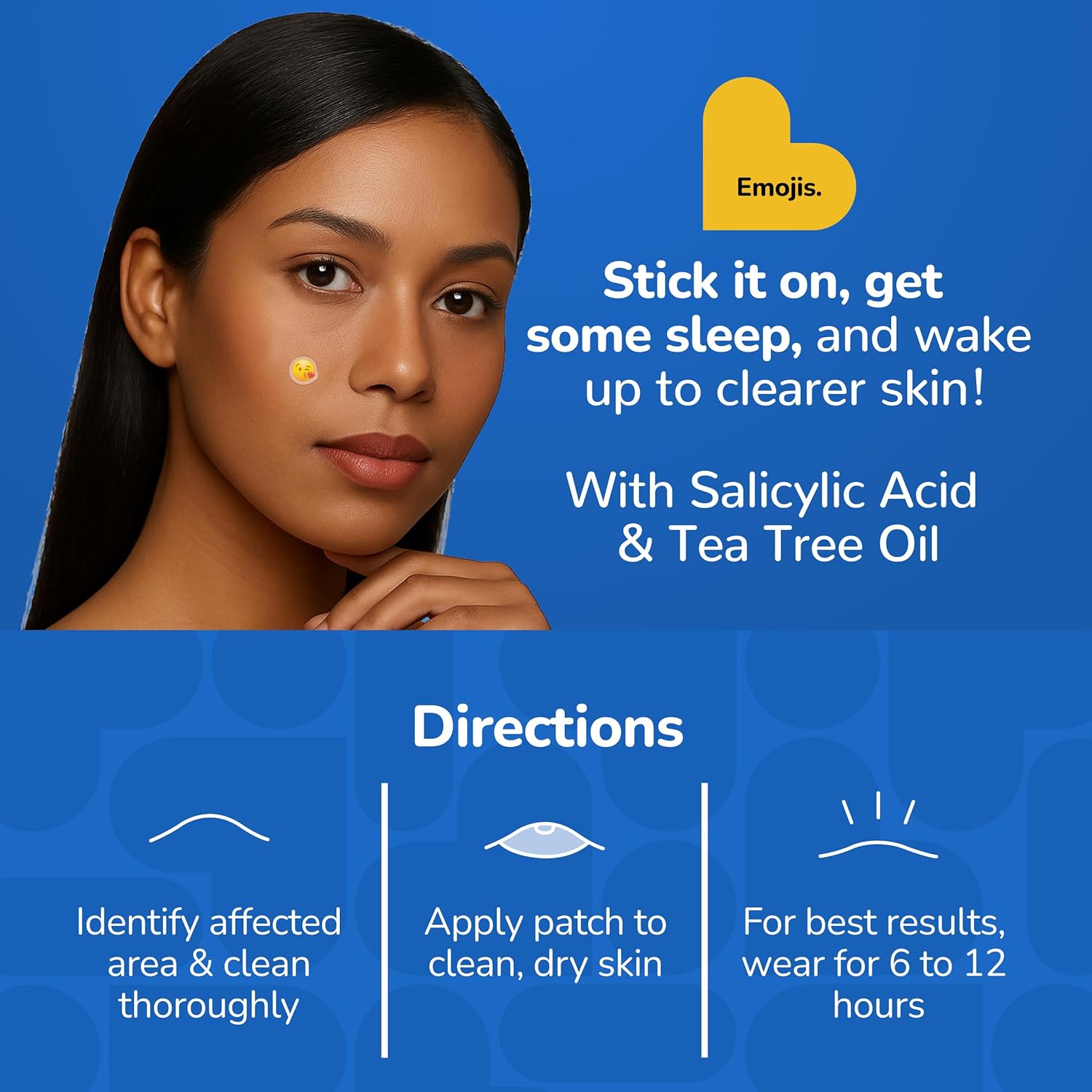 - EMOJIS ACNE PATCHES: Tackle zits and blemishes effectively and achieve clear and smooth skin with our Emoji Acne Patches. Our patches for pimples come in 6 funny and cute assorted styles