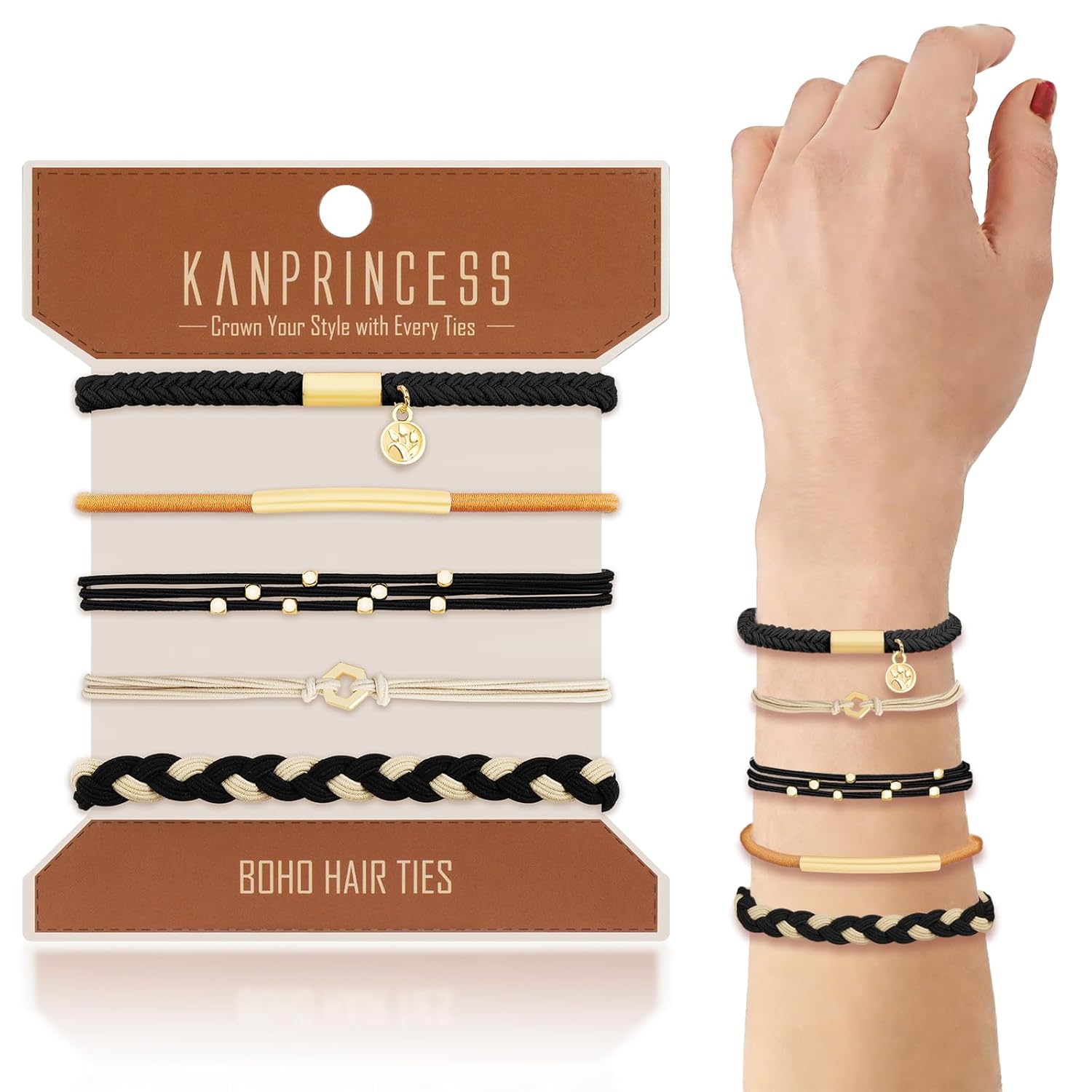 Hair Tie Bracelet, 5 Pcs Boho Hair Ties For Girls and Women, Elastic Hair Ties, Hair Bands For Ponytails, Ponytail Holder For Daily Life, Sport, Cooking, Working (Set 17)