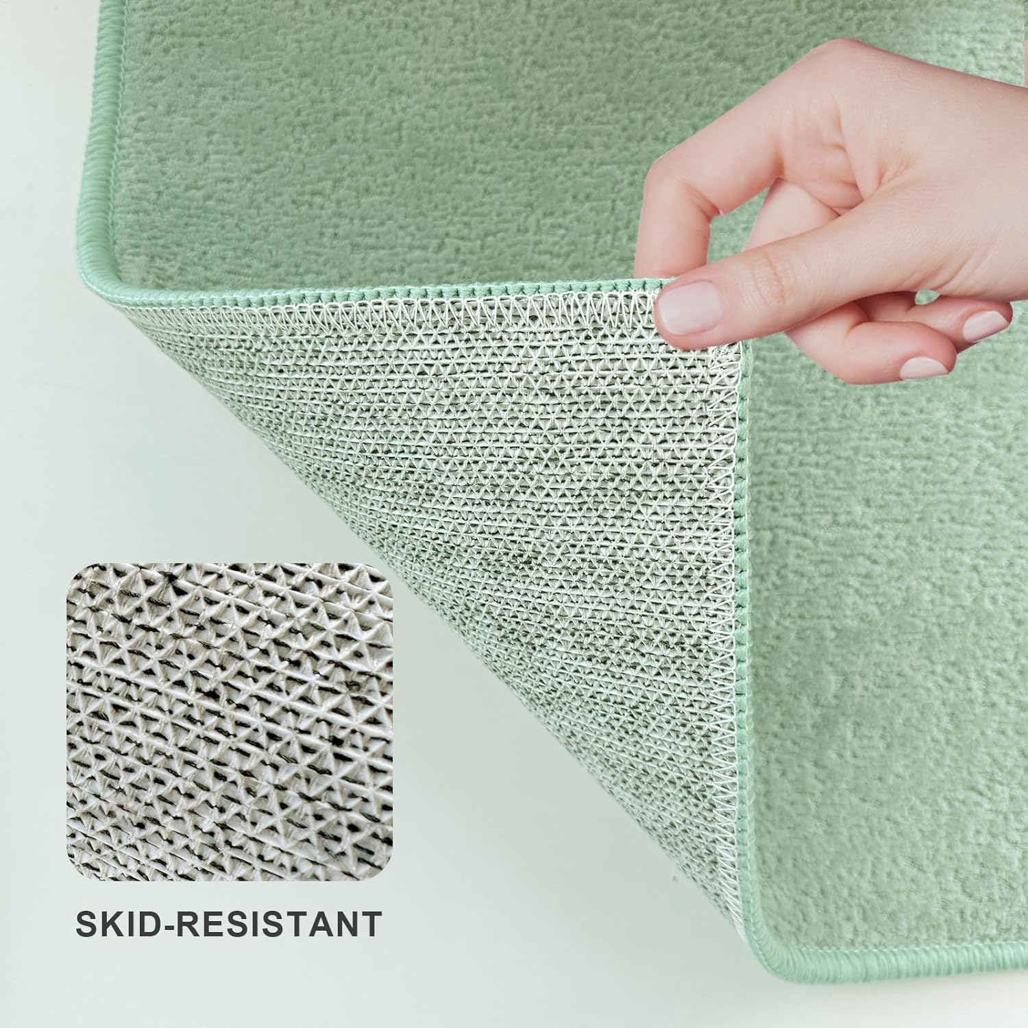 Bathroom Runner Rugs, Thin Absorbent Non-Slip Bath Mat, Quick Dry Low Pile Mats for Bathroom Floor Front of Bathtub,Shower Room,Sink,20"×47",Sage Green