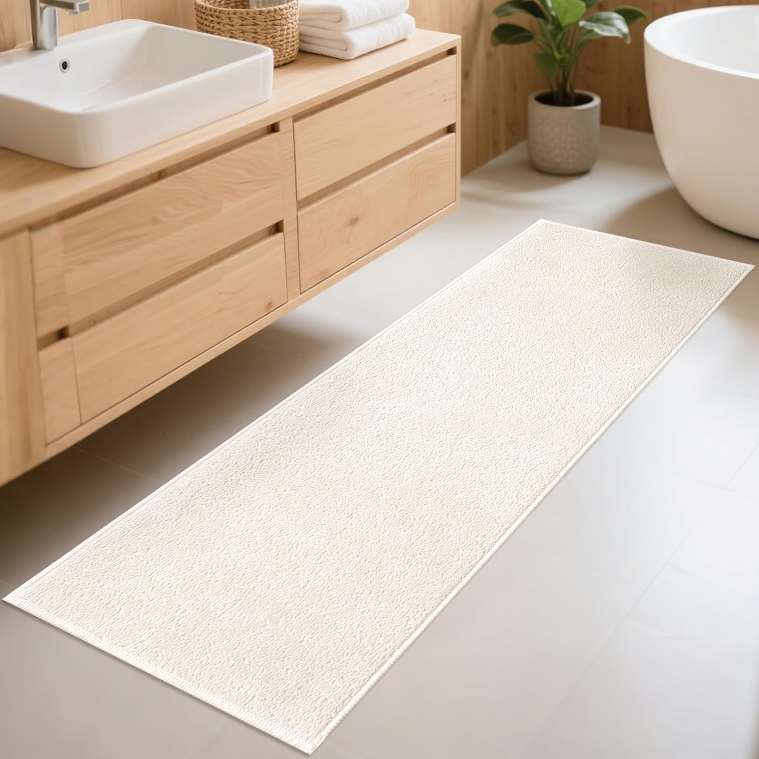 Bathroom Runner Rugs, Thin Absorbent Non-Slip Bath Mat, Quick Dry Low Pile Mats for Bathroom Floor Front of Bathtub,Shower Room,Sink,24"×60",White