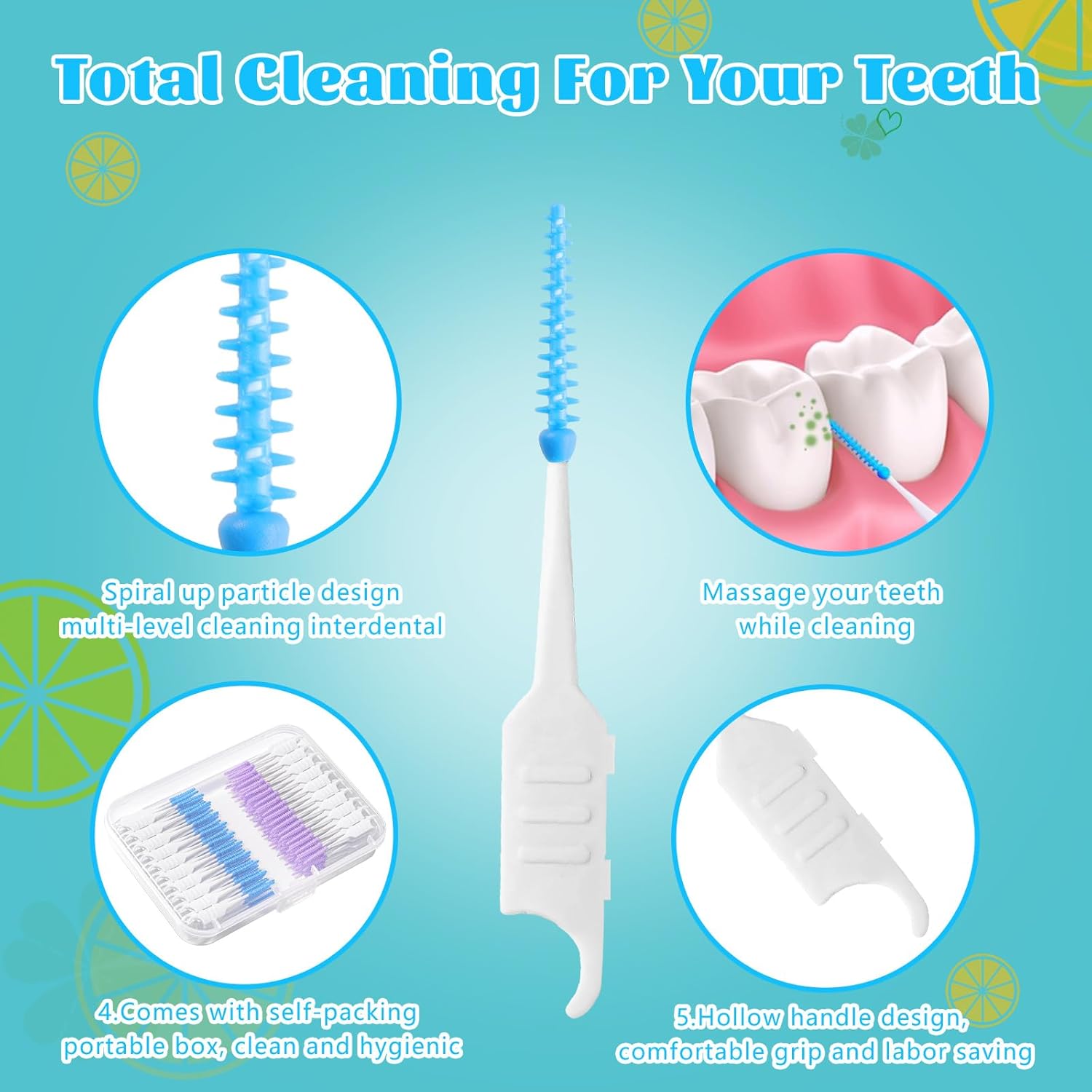 250 Pieces Interdental Brushes, Silicone Dental Floss Picks with Case Dental Brushes Dental Picks Tooth Floss Picks for Teeth Cleaning(Blue, Purple)