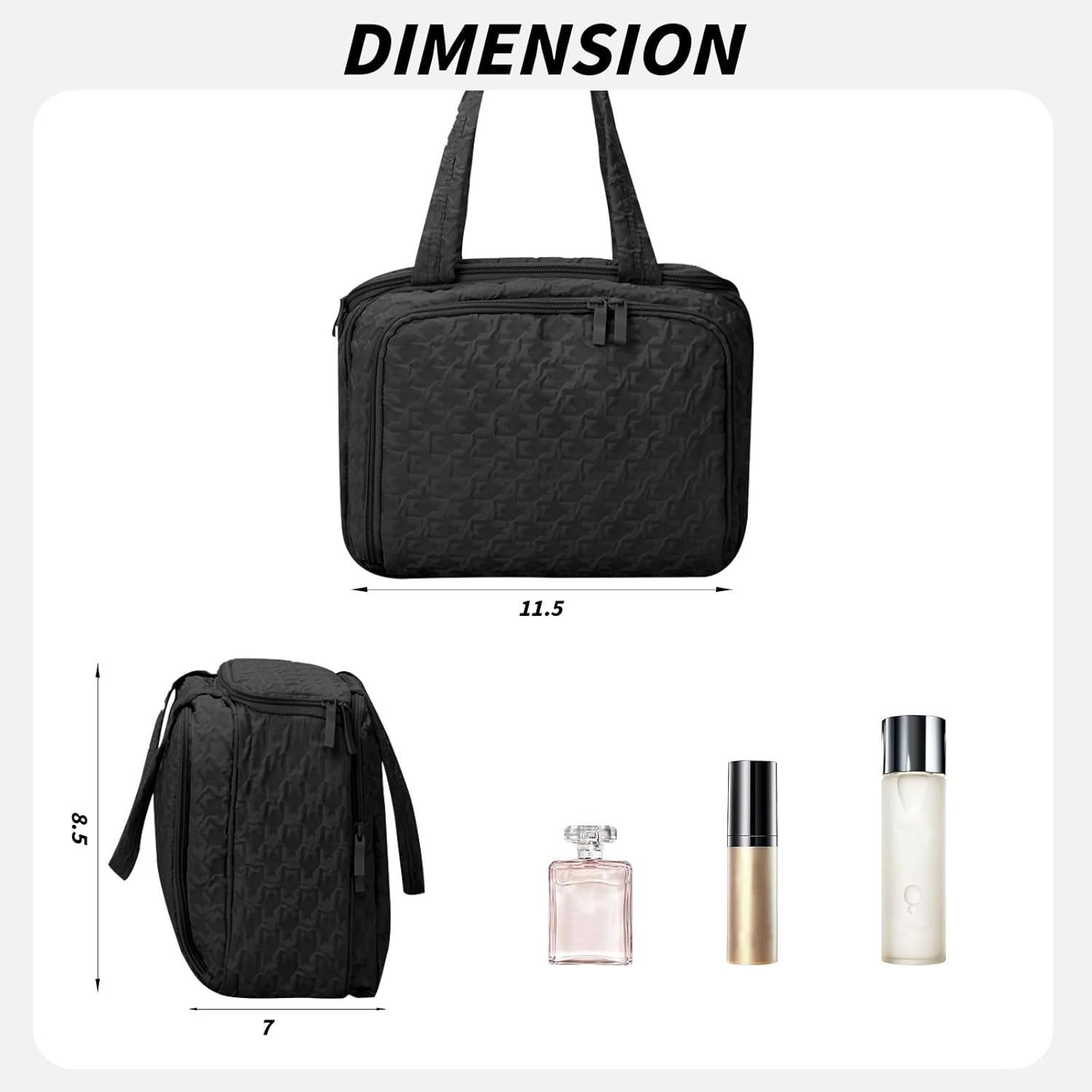- 【Large Capacity】Women toiletry bag size: 10.6''L*3.9''W*6.7''H. The travel toiletry bag can perfectly organize your necessary travel toiletries and makeup storage.