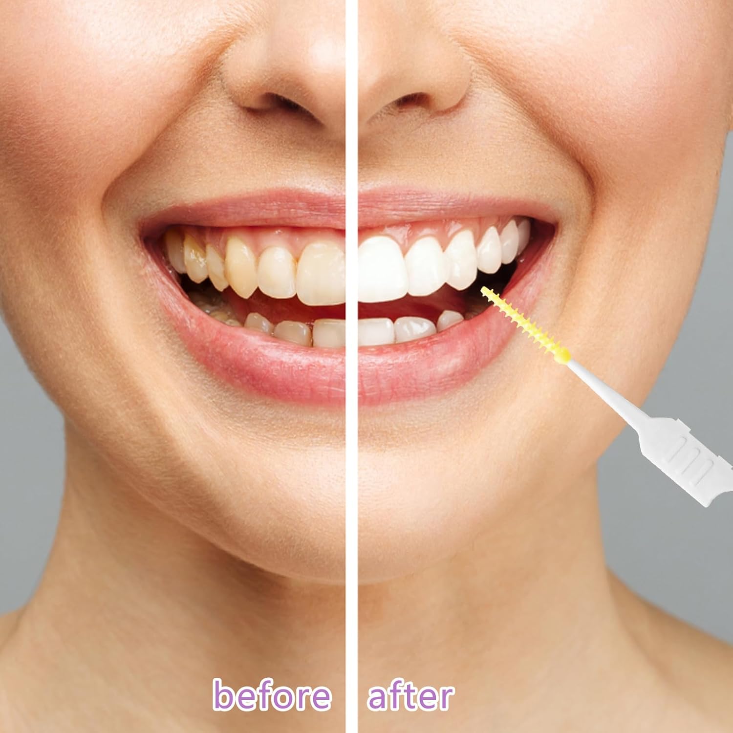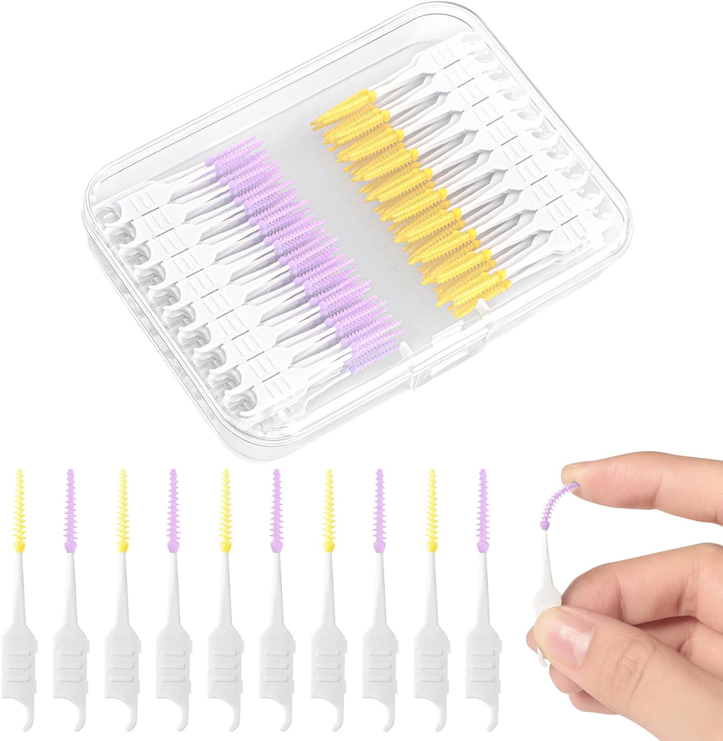250 Pieces Interdental Brushes, Silicone Dental Floss Picks with Case Dental Brushes Dental Picks Tooth Floss Picks for Teeth Cleaning(Yellow, Purple)
