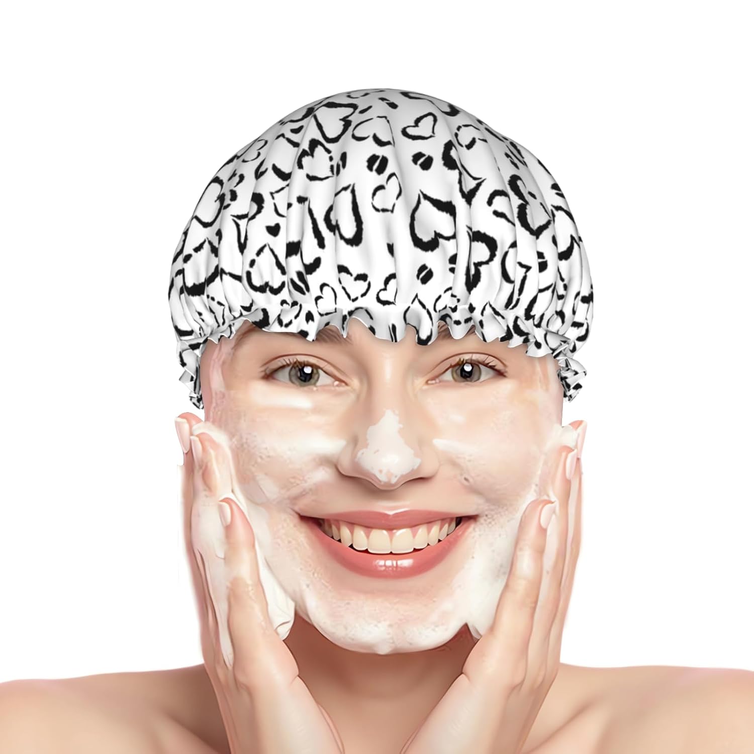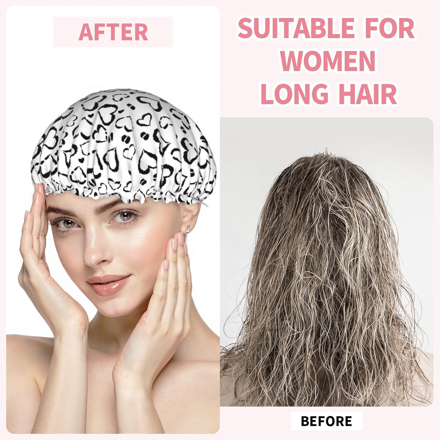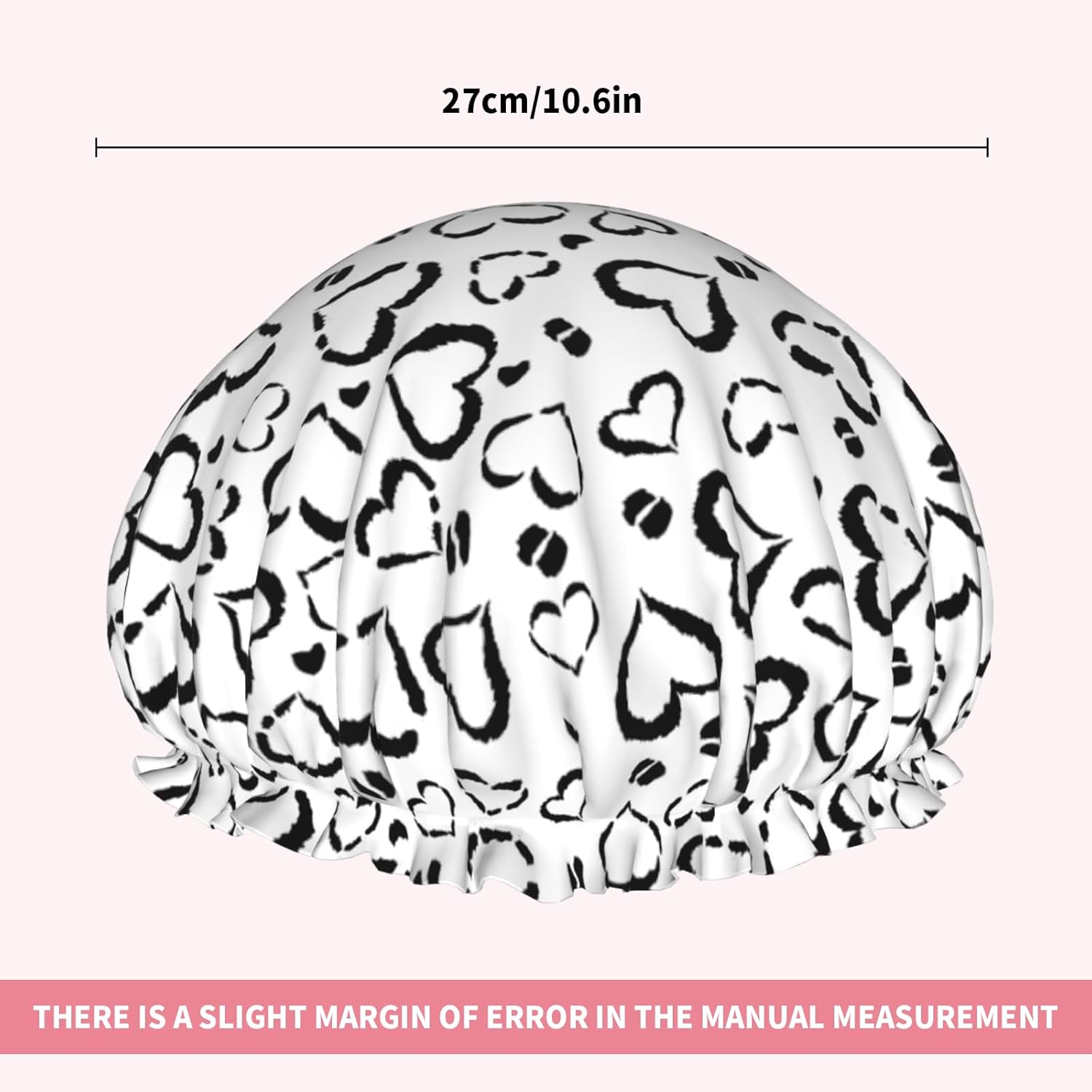 - Versatile Application: Our reusable black heart leopard print shower caps can be used for showering, cooking, household cleaning, and spa sessions, keeping your hair dry and protecting it from dust and cooking fumes. This black heart leopard print bath hair hat also fit for makeup, face washing, and applying facial mask, due to it suitable for all hair types-long, curly, voluminous or short, adding more convenience and beauty to your daily life.