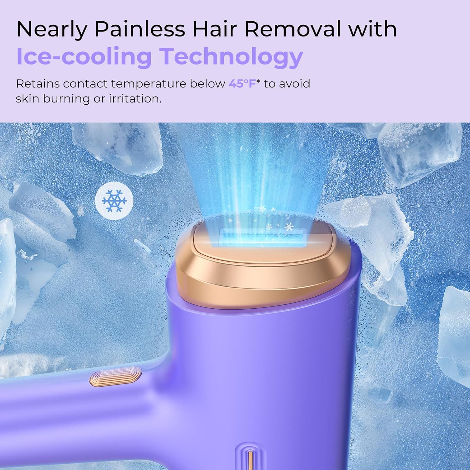Laser Hair Removal for Women & Men, 45°F Ice-Cooling Contact, Safe & Virtually Painless Alternative to Salon IPL Hair Removal Device, Long-Lasting Hair Removal from Home
