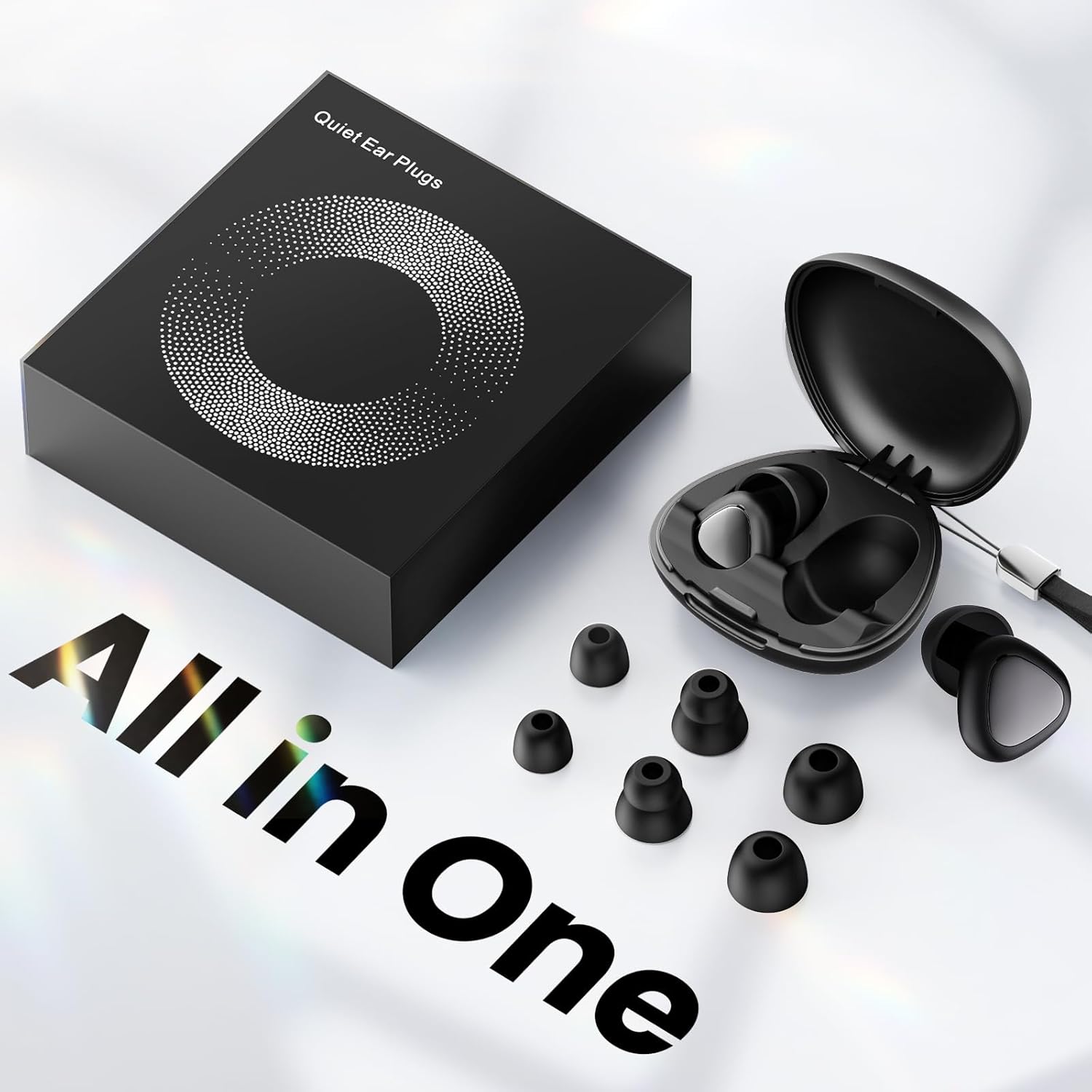 Ear Plugs for Sleeping Noise Cancelling, 45dB Reusable Silicone Earplugs with 6 Eartips and Carry Case, Ear Plugs for Concert & Hearing Protection, Sleep, Travel, Focus & Noise Reduction, Black