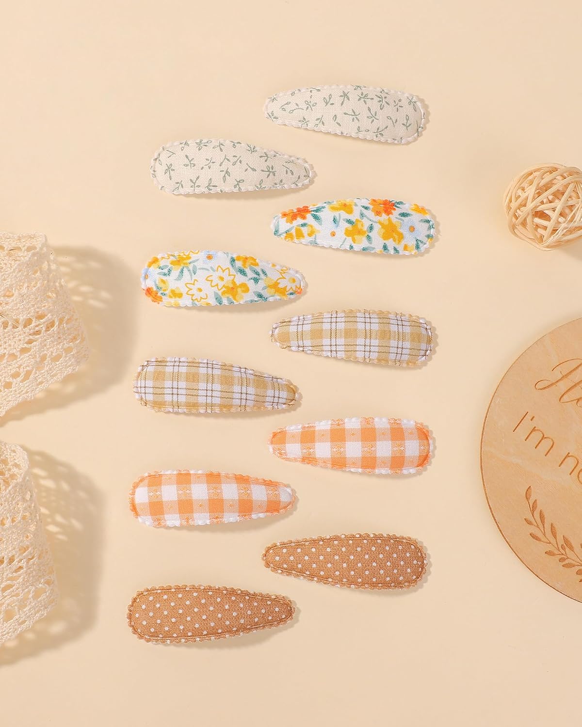 - TODDLER HAIR CLIPS: Set of 40 snap hair clips is made of high-quality metal, then wrapped with a cloth. These cloths snap hair clips display 20 bright colors in different prints, which is enough to meet your daily clothing match.These hair clips are designed with different patterns including solid, floral, striped, and leopard.