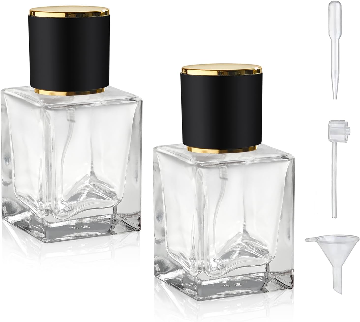 - Package:2 Pack 30ml(1 Oz) glass perfume spray bottle and and 3 kinds of perfume dispenser(1 funnel,1 dropper,1 transferer).It is easy to dispense liquid into the perfume atomizer.