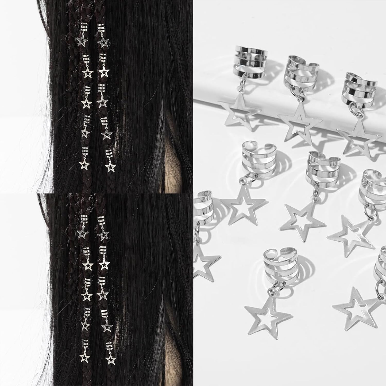 Silver Hollow Star ButterflyHair Jewelry for Braids; ButterflyMetals Cuffs Clip Hair Accessories Styling Fashion Toos for Women Men 35 Pcs (Sliver)