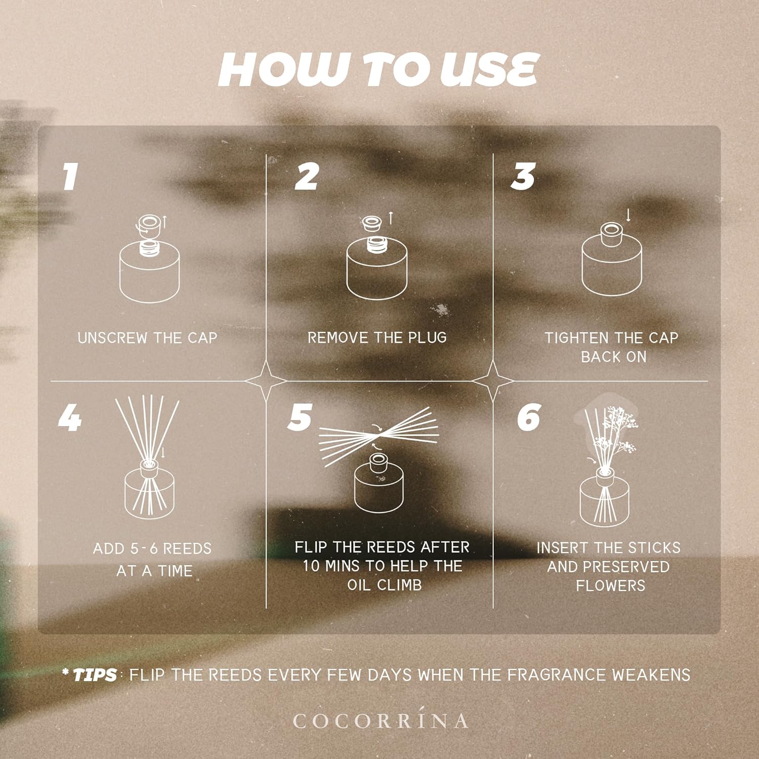 - Long-lasting Fragrance: Once the reeds absorb the oils, they gently disperse the aroma, subtly filling your room for weeks.