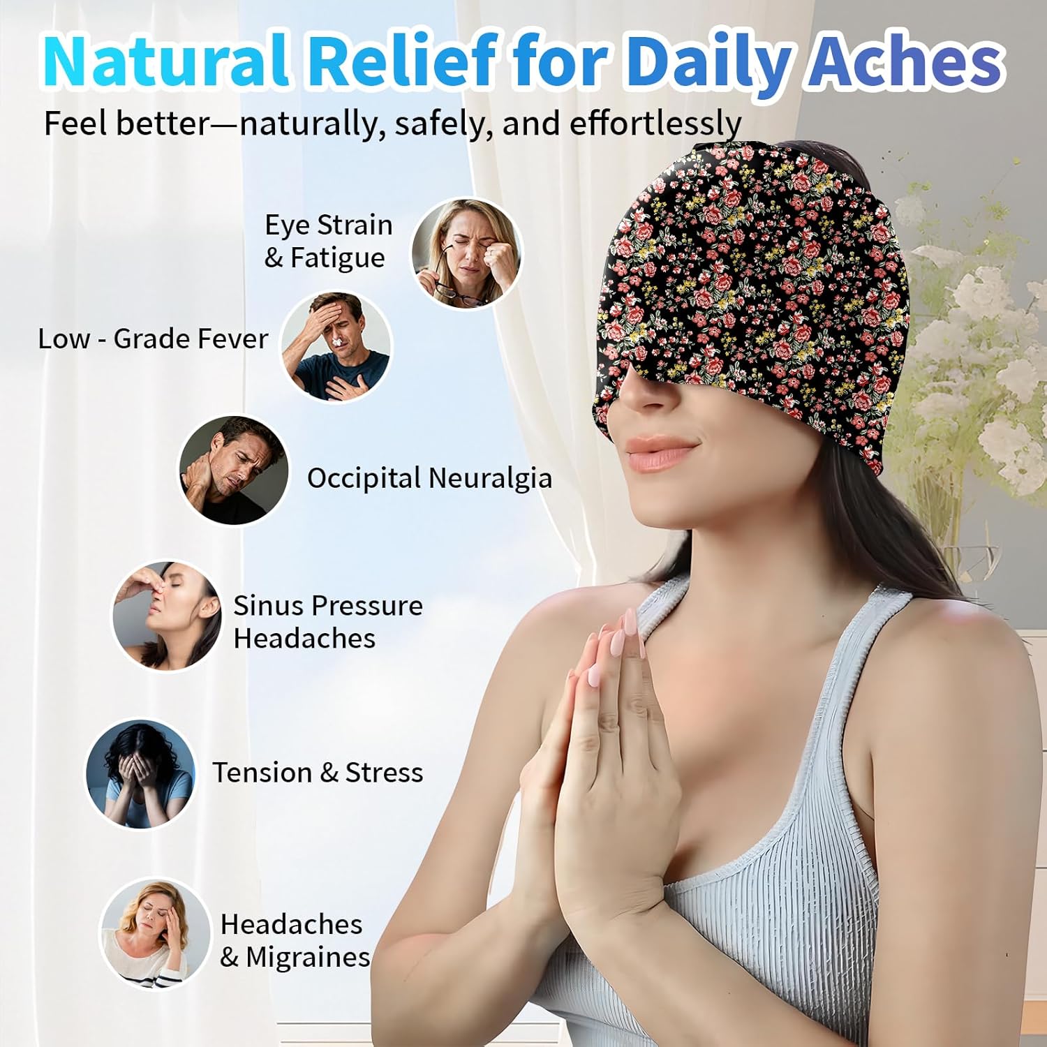 - 360° Targeted Relief & 25% Larger Coverage Experience instant migraine relief with our gel ice cap's unique 360° design, expanding cold compress area by 29% vs. standard caps. The stretchable fabric comfortably contours to all head sizes, applying gentle pressure exactly where needed – forehead, temples, and eye areas – to block pain signals fast.