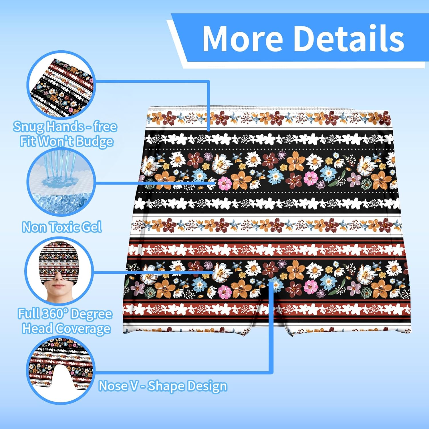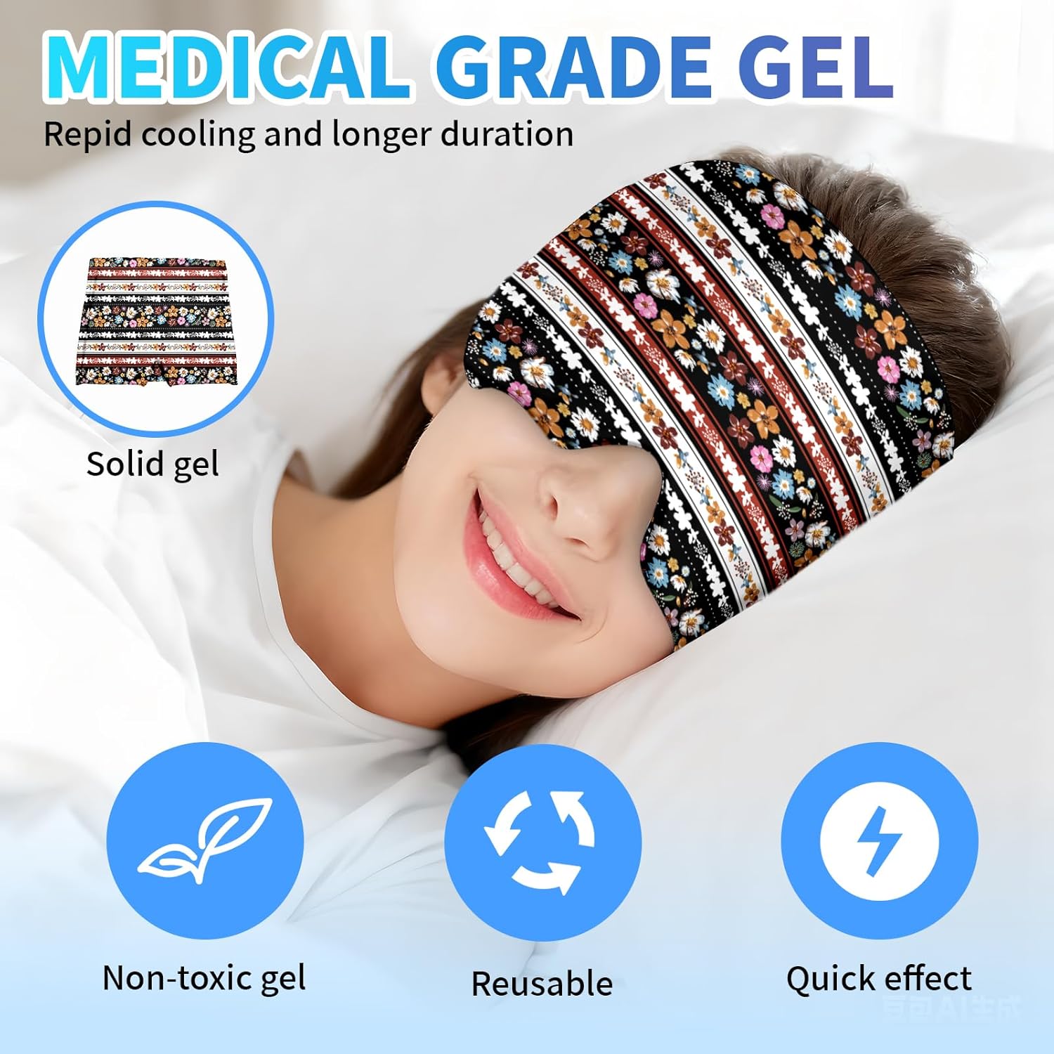 - 360° Targeted Relief & 25% Larger Coverage Experience instant migraine relief with our gel ice cap's unique 360° design, expanding cold compress area by 31% vs. standard caps. The stretchable fabric comfortably contours to all head sizes, applying gentle pressure exactly where needed – forehead, temples, and eye areas – to block pain signals fast.